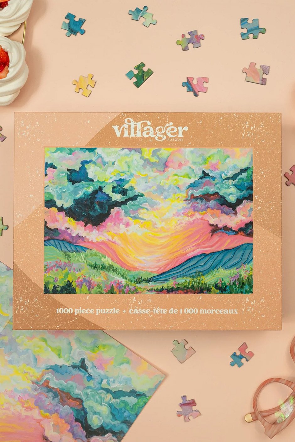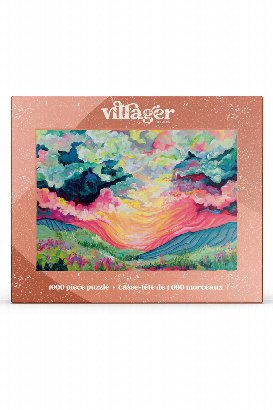 Experience the magic of daybreak with this stunning abstract landscape puzzle, featuring a bold sunrise over a valley of fields and flowers. Designed by Toronto artist Julie Amlin, this vibrant scene allows you to enjoy this dreamy time of day all from the comforts of home.