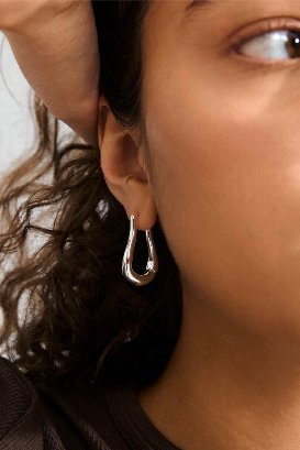 The Odette Hoop Earrings from Pilgrim have a sleek oval shape in gold or silver plating. Easy to wear with that luxe Pilgrim finish. Made from 99% recycled materials, so they look good and do good.