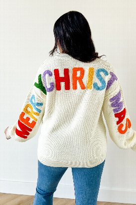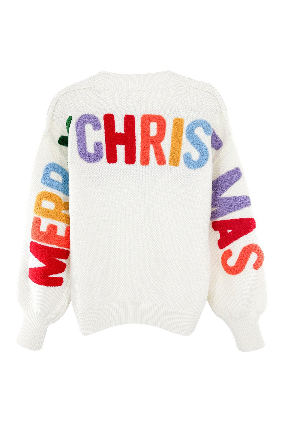 • Chenille 'MERRY CHRISTMAS' on back