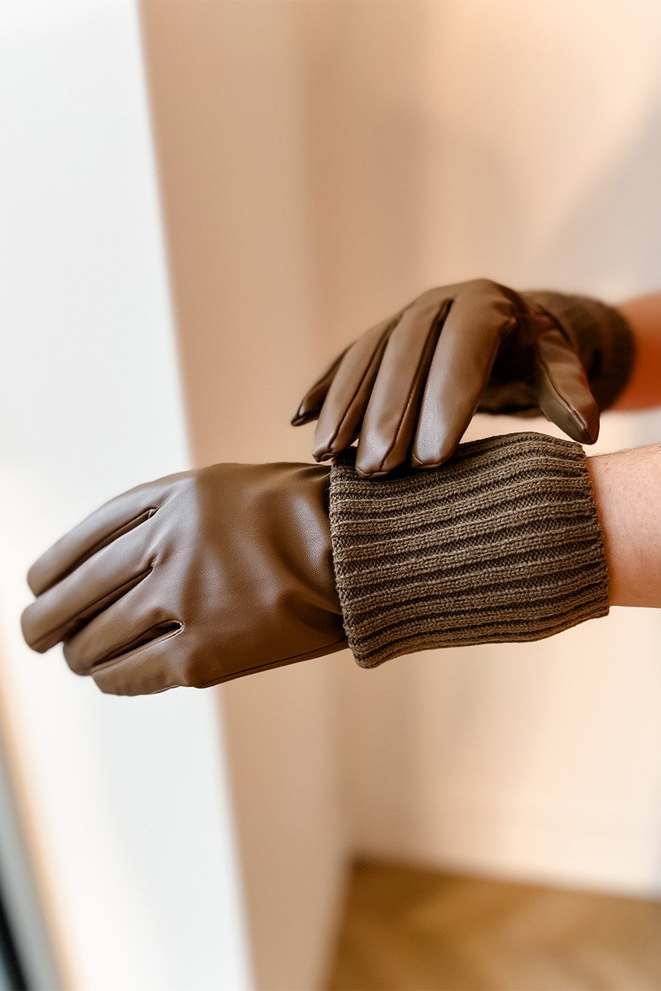 These gloves are so nice for the cooler season! I love that they have a warm lining inside to keep you extra toasty. The ribbed fabric adds an extra layer of warmth that you can roll back as well to expose the glove underneath. Wearing either way gives you two different looks! I’m in the S/M and think it fits great!