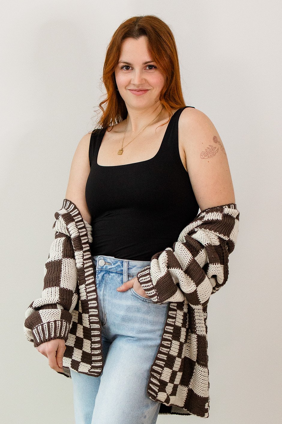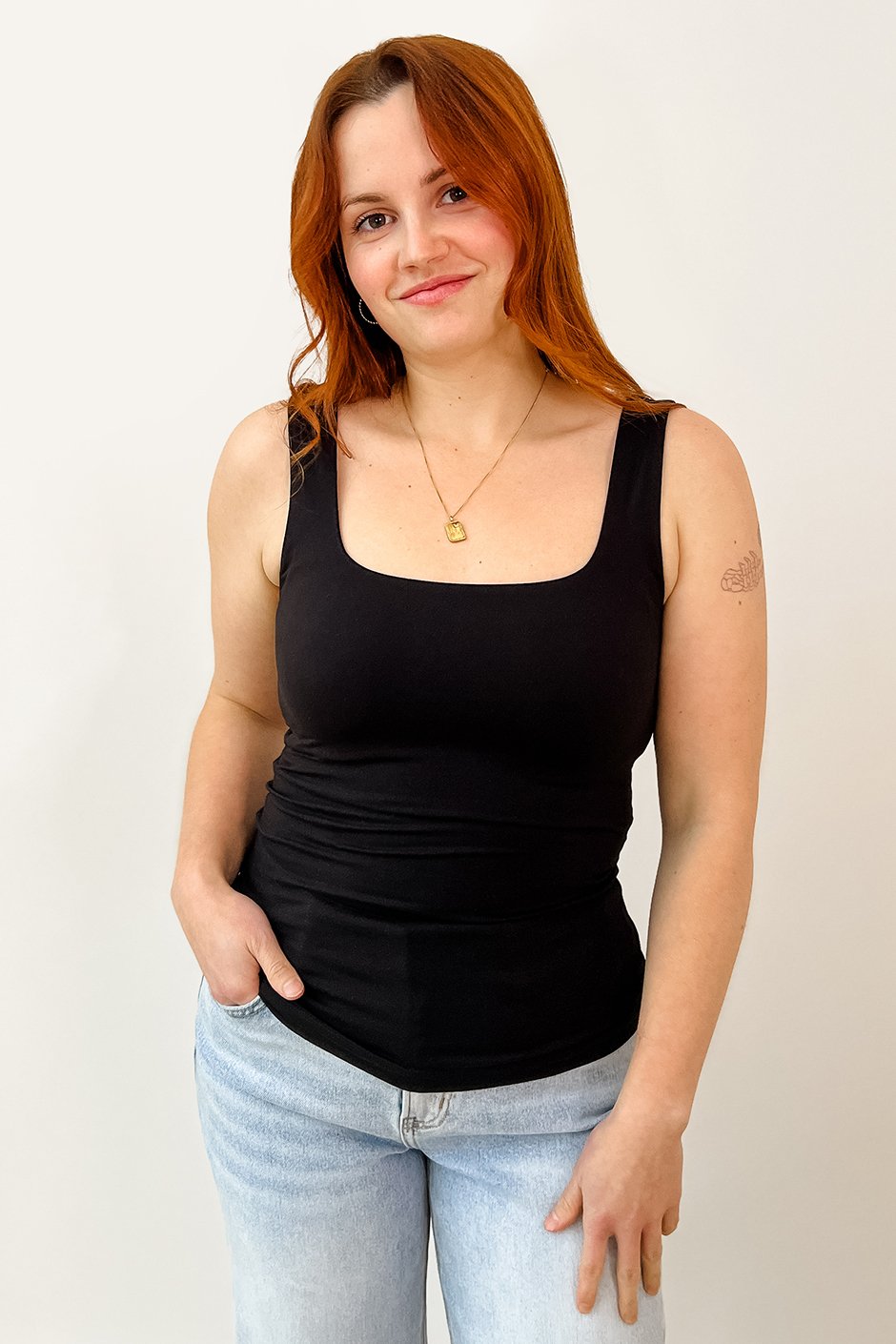 The True Form Tank is soft, stretchy, and has a flattering square neckline with built-in lining for extra coverage. Feels like a second skin but looks polished enough to wear anywhere. Pair it with the matching joggers for an effortless set.