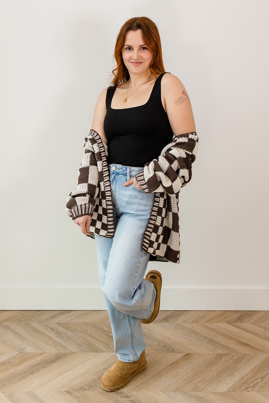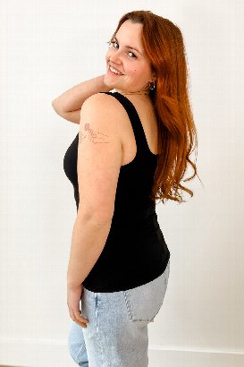 Oh wow, the comfort of these tanks is unreal! They match the colours of the Sporty Spice Joggers launching. They're made with the same buttery soft fabric Rae Mode is known for! It's a square neckline with an extra lining on the inside for extra bust support. I feel super secure in these tanks and love that they have a lot of stretch while still feeling held in. I'm in my true size small and that's the size I would go with!