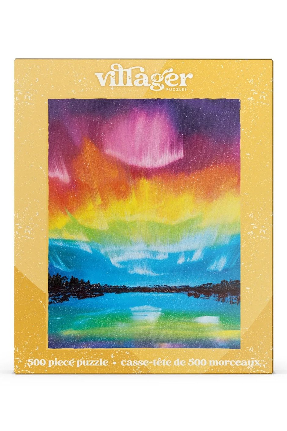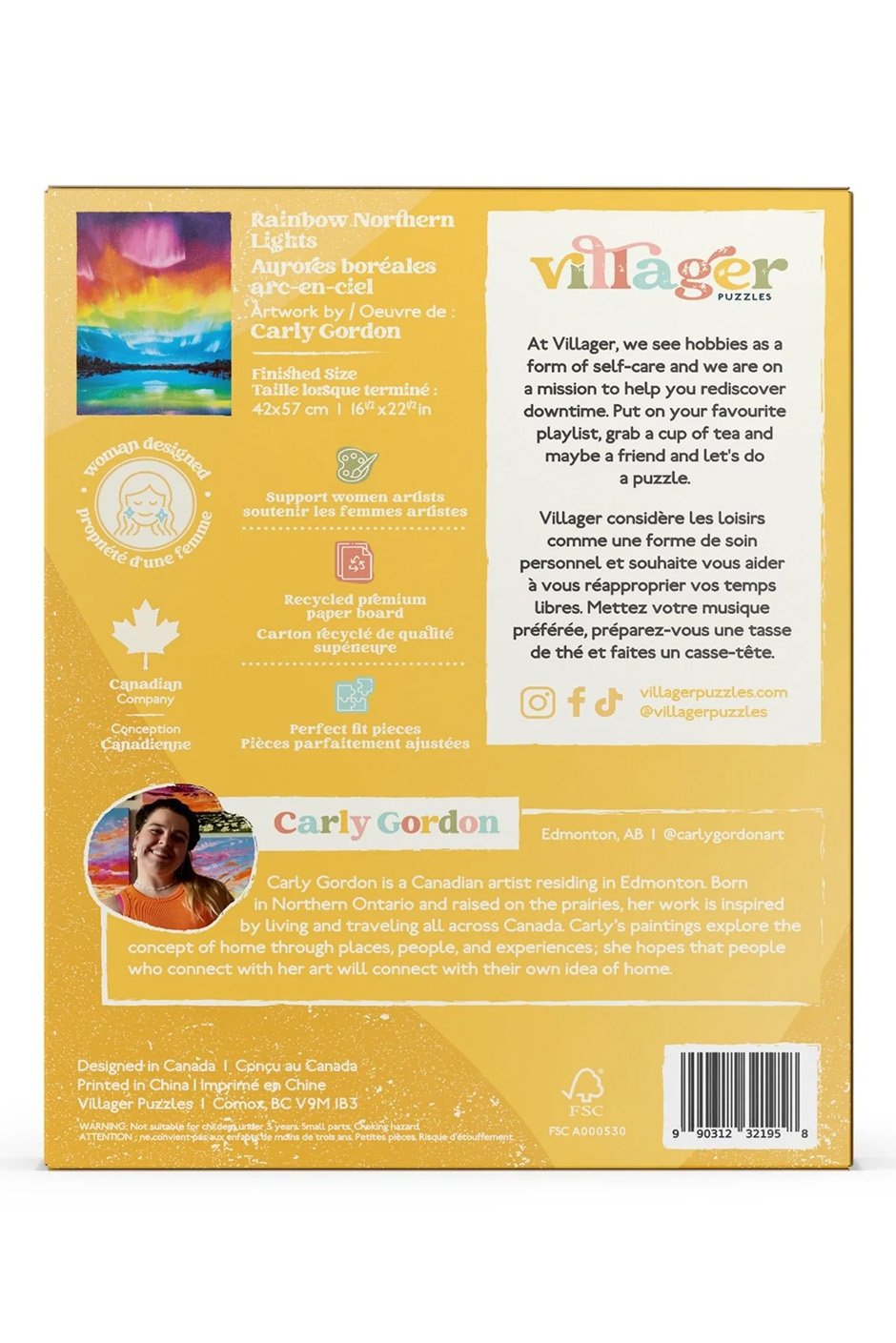 Experience the magic of Northern Canada, featuring the aurora borealis in a vibrant rainbow interpretation. Watch the northern lights dance across the sky as you piece together this mesmerizing artwork. Beautifully painted by Edmonton artist, Carly Gordon.