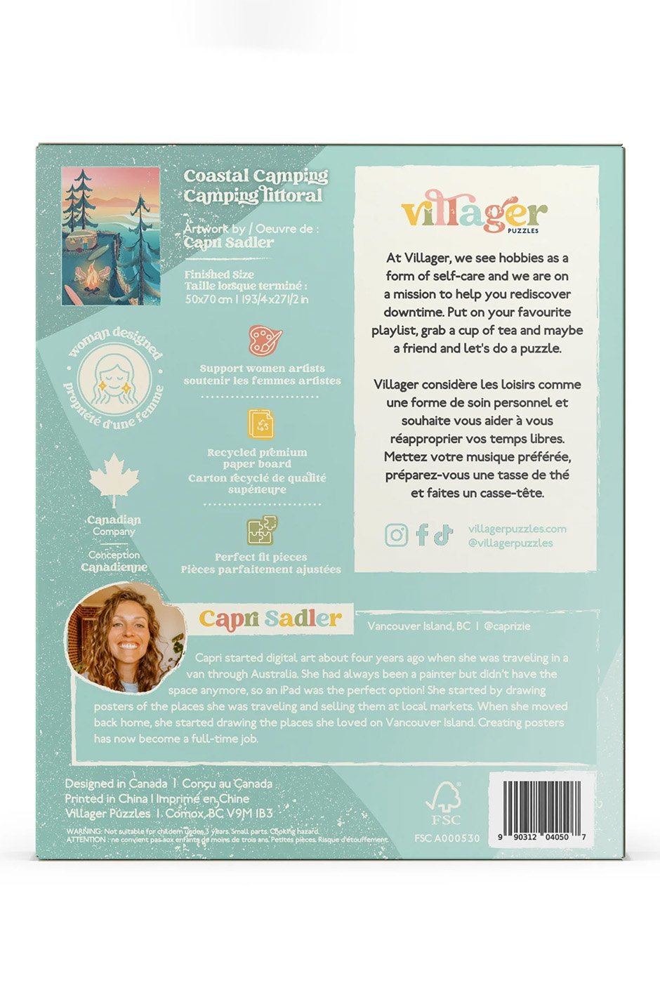 • Designed by Vancouver Island artist Capri Sadler
