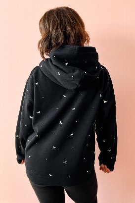 The Horse Girl Core Hoodie from Brunette the Label is covered in hand-drawn horses and tiny hearts. The signature cotton-poly fleece is roomy and cozy with a kangaroo pocket. For the horse girls, the former horse girls, and everyone in between. Pair it with the matching Oversized Joggers.