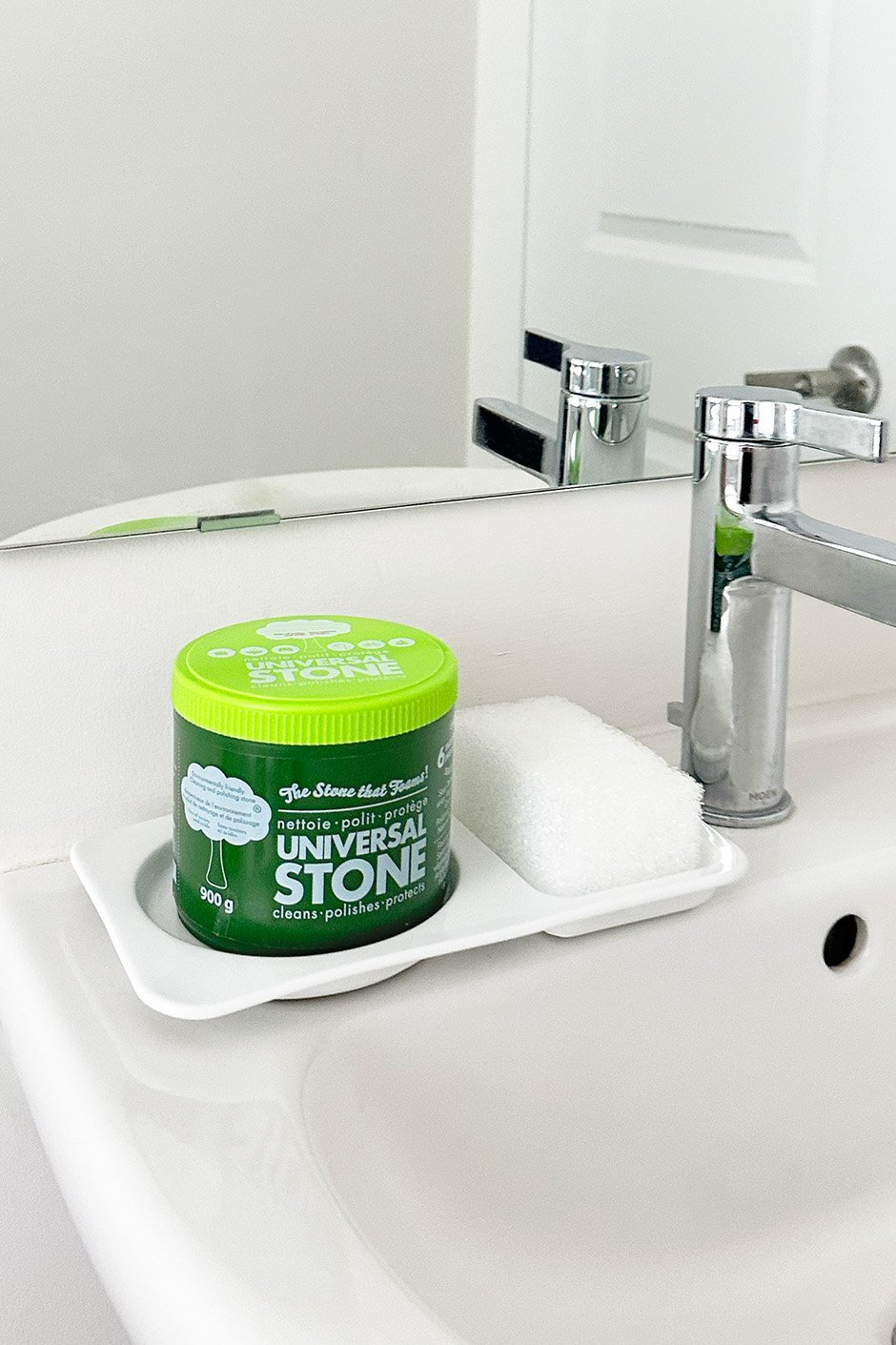 The Ceramic Tray is designed to hold your Universal Stone Cleaner and sponge in one place. Keeps your countertop or under-sink area organized and looking tidy. A simple solution for anyone who likes their cleaning supplies neat and accessible