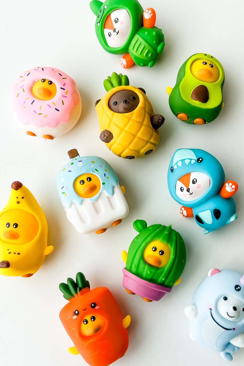 Squishy Friends, Endless Fun! These little cuties come with mix-and-match outfits that let you style them however you like. Play solo, team up with friends, or put on a mini fashion show.