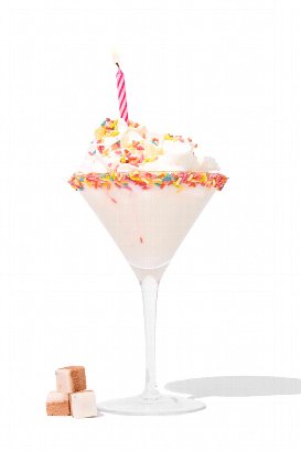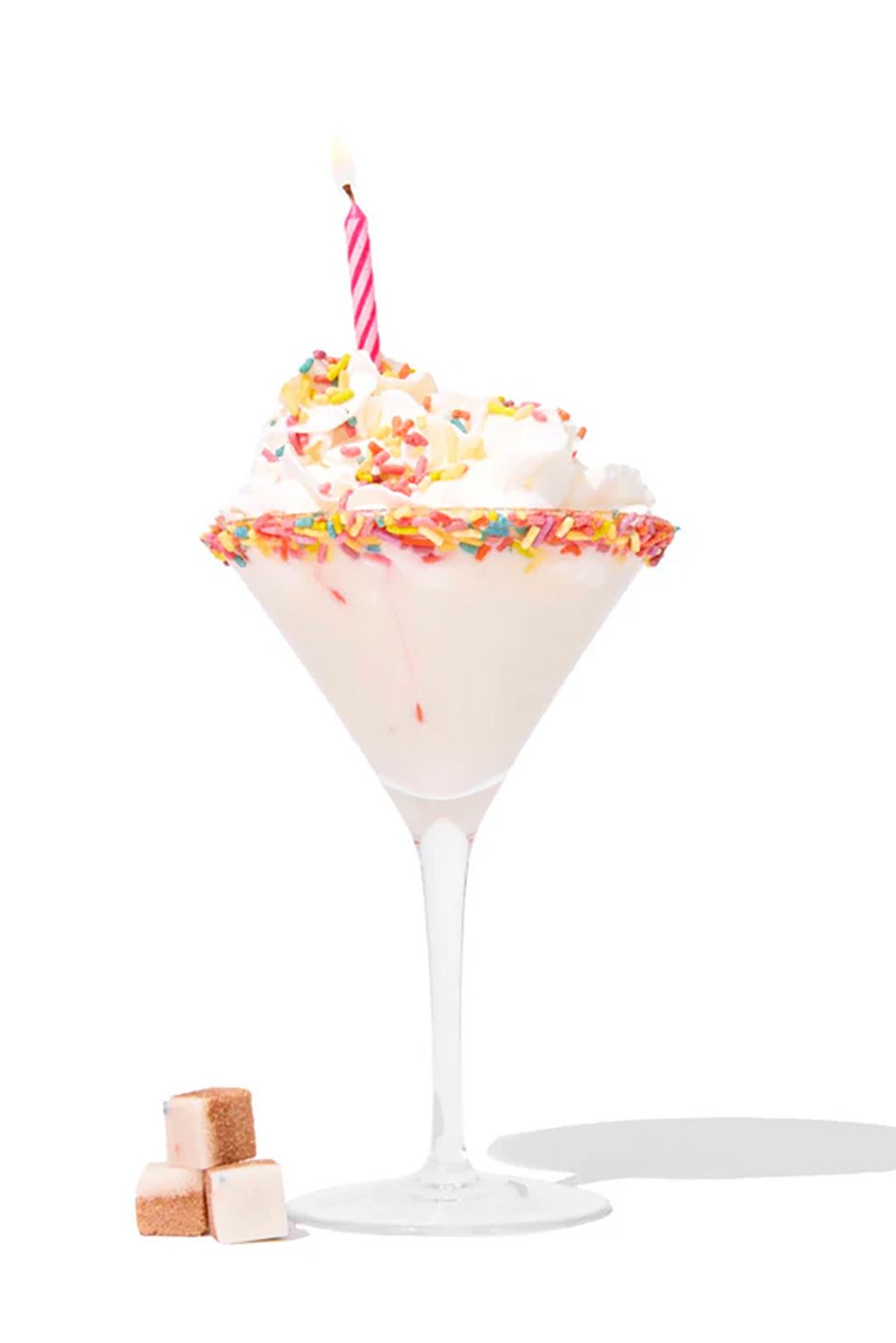FUNFETTI BIRTHDAY MARTINI: Saturate 1 LUXE Funfetti Cube in 1oz of water, muddle until cube becomes a syrup. Add 2oz of white chocolate liqueur, 1oz of amaretto liqueur, and 2oz of half and half. Shake with ice, strain, and serve in a new glass straight up. Garnish with rimmed LUXE Sprinkles Toppings.