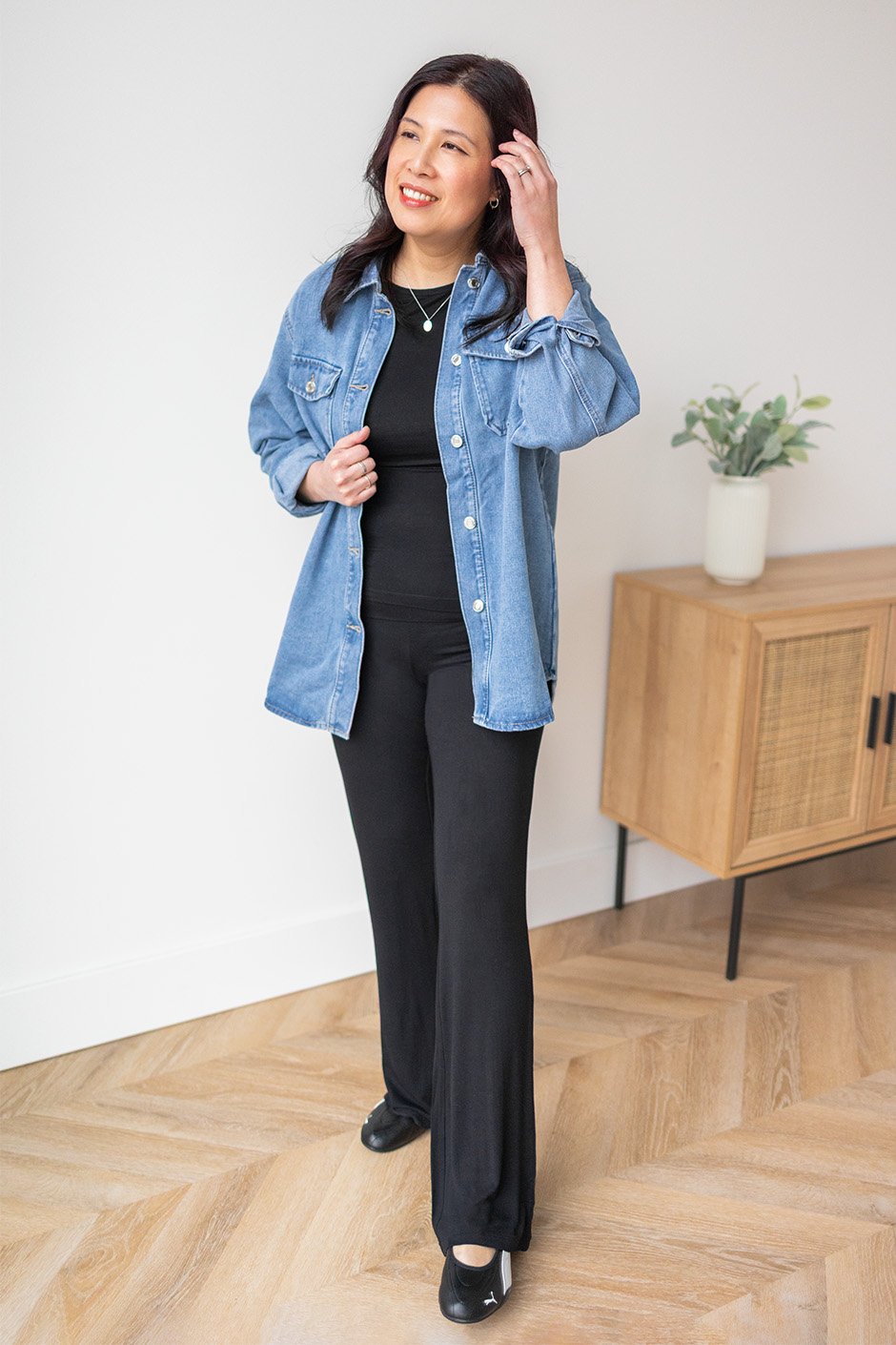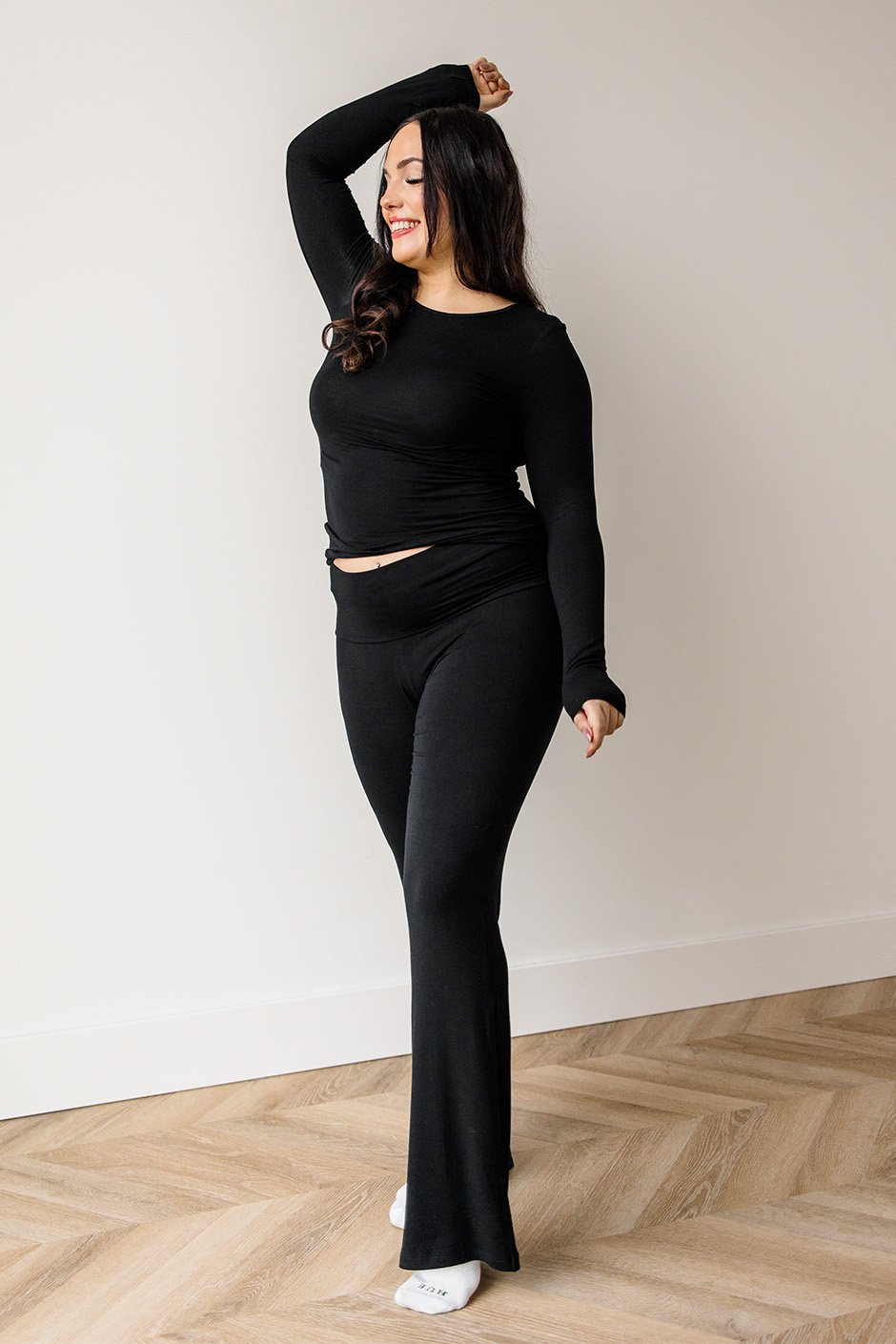 I LOVE the feel of the soft motion pants. The fabric reminds me of those really flowy pants from Y2K that everyone wore, especially with the foldable waistband! The pants are long, so if you have longer legs, you are going to love these as much as I do! I'm in my usual large and the fit is great. There is plenty of stretch and they feel amazing on!