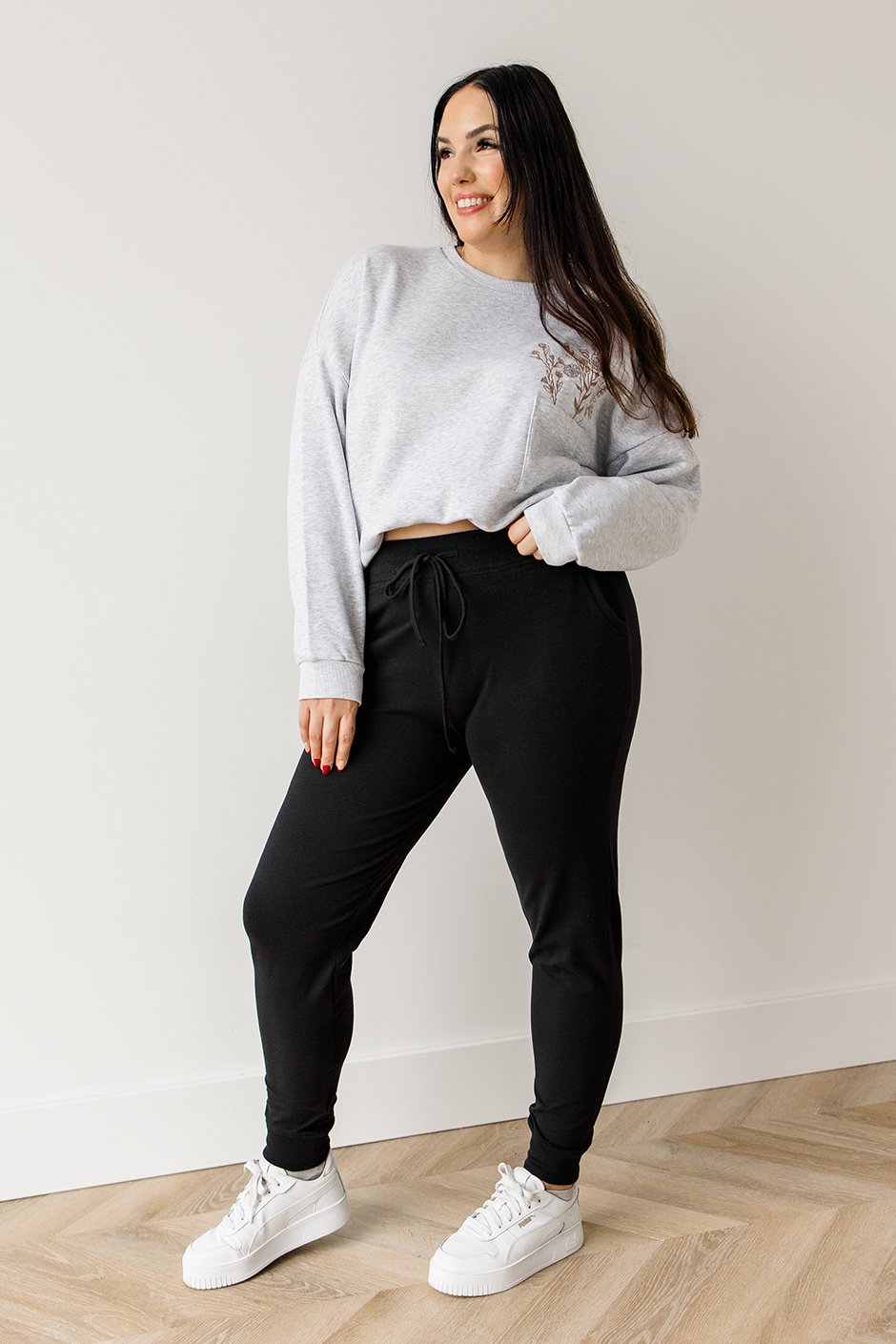 The Catch You Later Joggers are soft, lightweight, and stretchy in all the right ways. The relaxed fit, front pockets, and ribbed cuffs make them an easy pick for busy mornings, coffee runs, or just keeping things comfy. A simple staple you’ll want in every wash cycle.