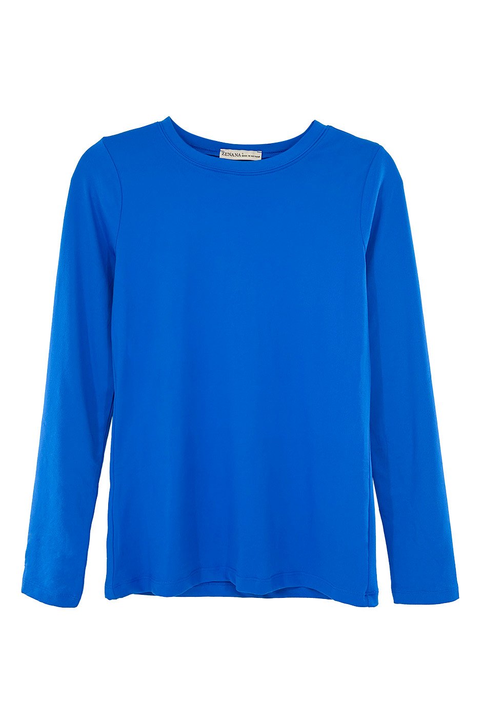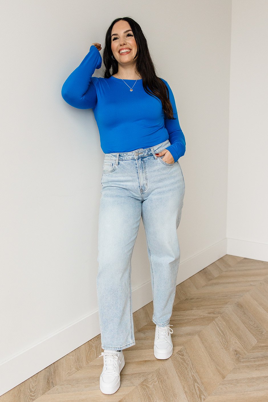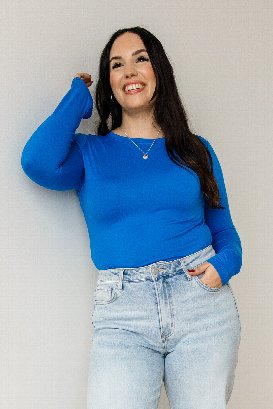 Ok, wow!! I tried on this top and right away I could tell this fabric was the softest, smoothest fabric!! The round neckline is great and doesn't feel restricting at all. The sleeve length is perfect for me. The fabric is soft, but also stretchy! The shape of the top is more fitted, which I love but you could definitely size up if you don't want it as fitted. It's true to size! I'm wearing the large and it's perfect for me. This will be my new go-to long sleeve top