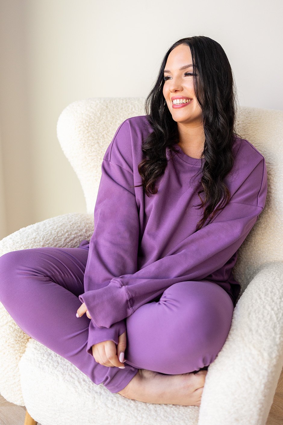This set is such a cozy go-to! The ribbed leggings are super stretchy with a comfy high rise, and the longer length is great if you like a little extra coverage. The sweatshirt has a slightly thicker feel, so it’s perfect for wearing out and about, not just lounging. I tried the size XL and it had a slightly oversized feel on me. I’d stick with my usual size L for the fit I prefer.