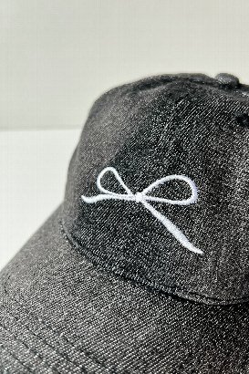 A washed denim ballcap with the sweetest stitched bow detail! Just toss it on, adjust the back tab, and you’re good to go. Soft 100% cotton keeps it comfy for everyday wear.