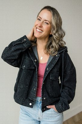 This jacket is the perfect piece for all seasons! It would be really cute with a plaid, chunky knit or hoodie layered underneath! It has a convenient snap closure down the front, on the pockets and cuffs. I love the hood with functional drawstrings, that isn't something you see on a denim jacket often! It isn't a thin or heavy denim- it sits somewhere in the middle. There is no stretch to the denim, but the shape is more relaxed. I'm wearing my usual small and I have plenty of room to move and layer underneath!