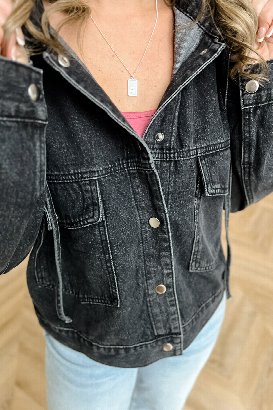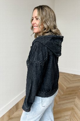 The Cassie Hooded Denim Jacket brings a cozy spin to a denim classic with its built-in hood and easy snap closures. Chest pockets add a touch of style, allowing the whole look to transition seamlessly from daytime to evening plans.