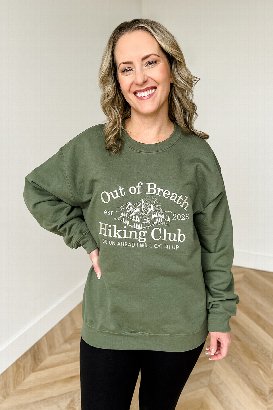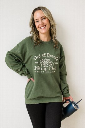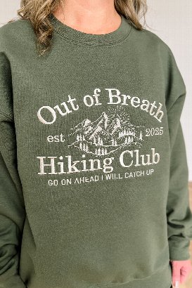 Home / Shop All / TOPS / GRAPHIC TOPS / Out of Breath Hiking Club Crew