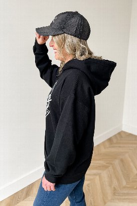 Hockey Mom's, wear your team spirit on your sleeve with this hoodie! This hoodie fit is very similar to the other hoodies from Moose Mountain. The inside has a fleecy lining for extra comfort. The fabric is a typical thicker hoodie material that is very good quality! The fit is more relaxed, but not oversized. I'm normally a small in tops, but I'm wearing the Medium in the hoodie for extra comfort. I could wear the small, but prefer my hoodies to not be too fitted along the bottom hem or in the sleeves, so I went for the medium to get the extra room and length.