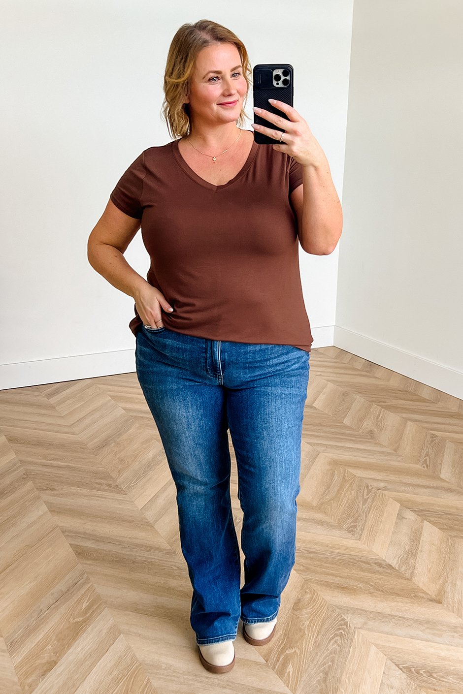 I absolutely love this Zenana top! The variety of colors is amazing, and I love the V-neck. It reminds me of the Plain & Simple top because it’s just so easy and comfortable to wear. The fit is perfect- slightly relaxed and very flattering. I’m wearing the XL and would say it fits true to size. Definitely going to add some of these to my closet.