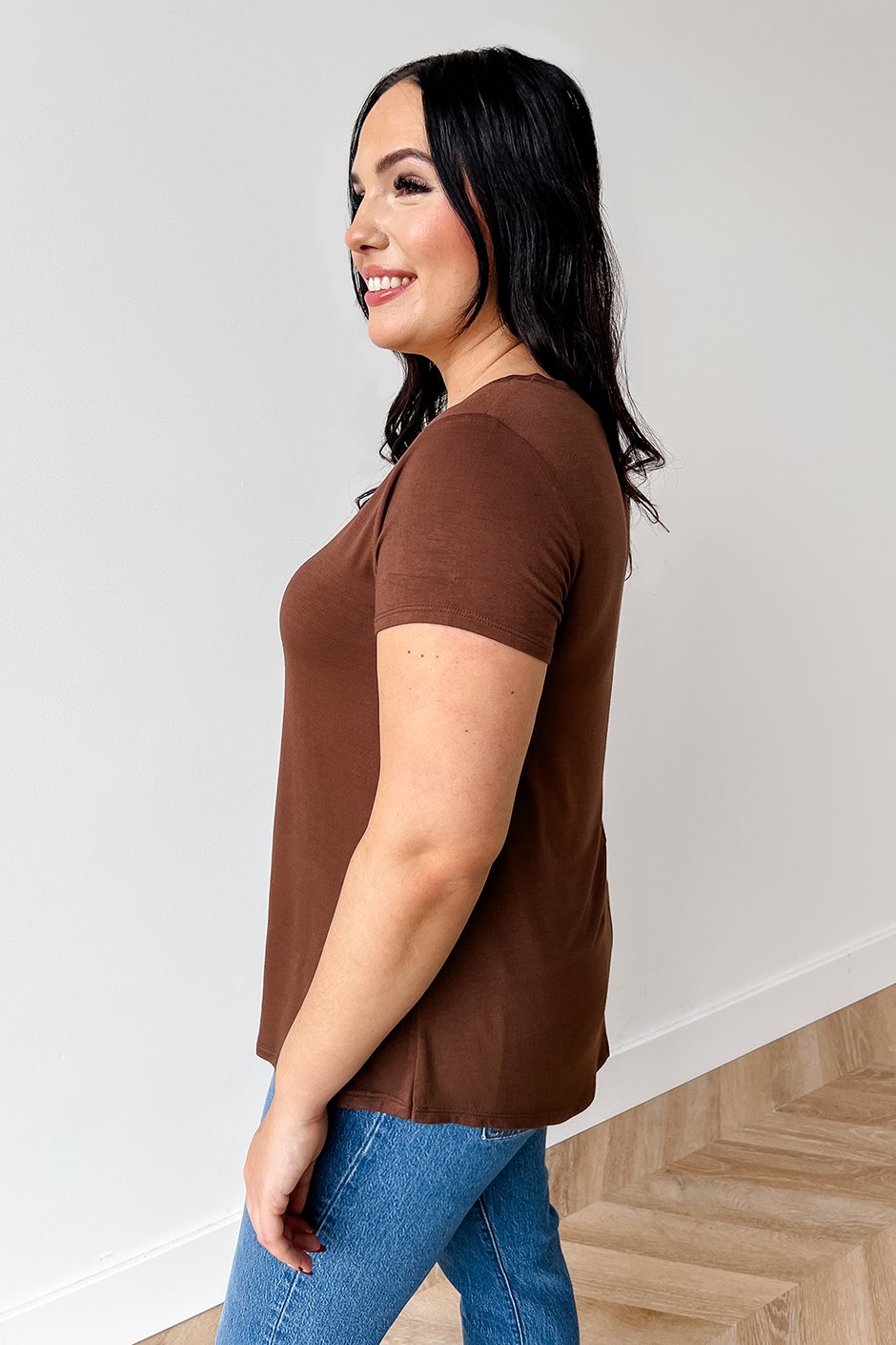 Meet your new everyday favorite. This easy, soft V-neck tee is the kind of basic you’ll want in every color. Simple, soft, and perfect for any day!