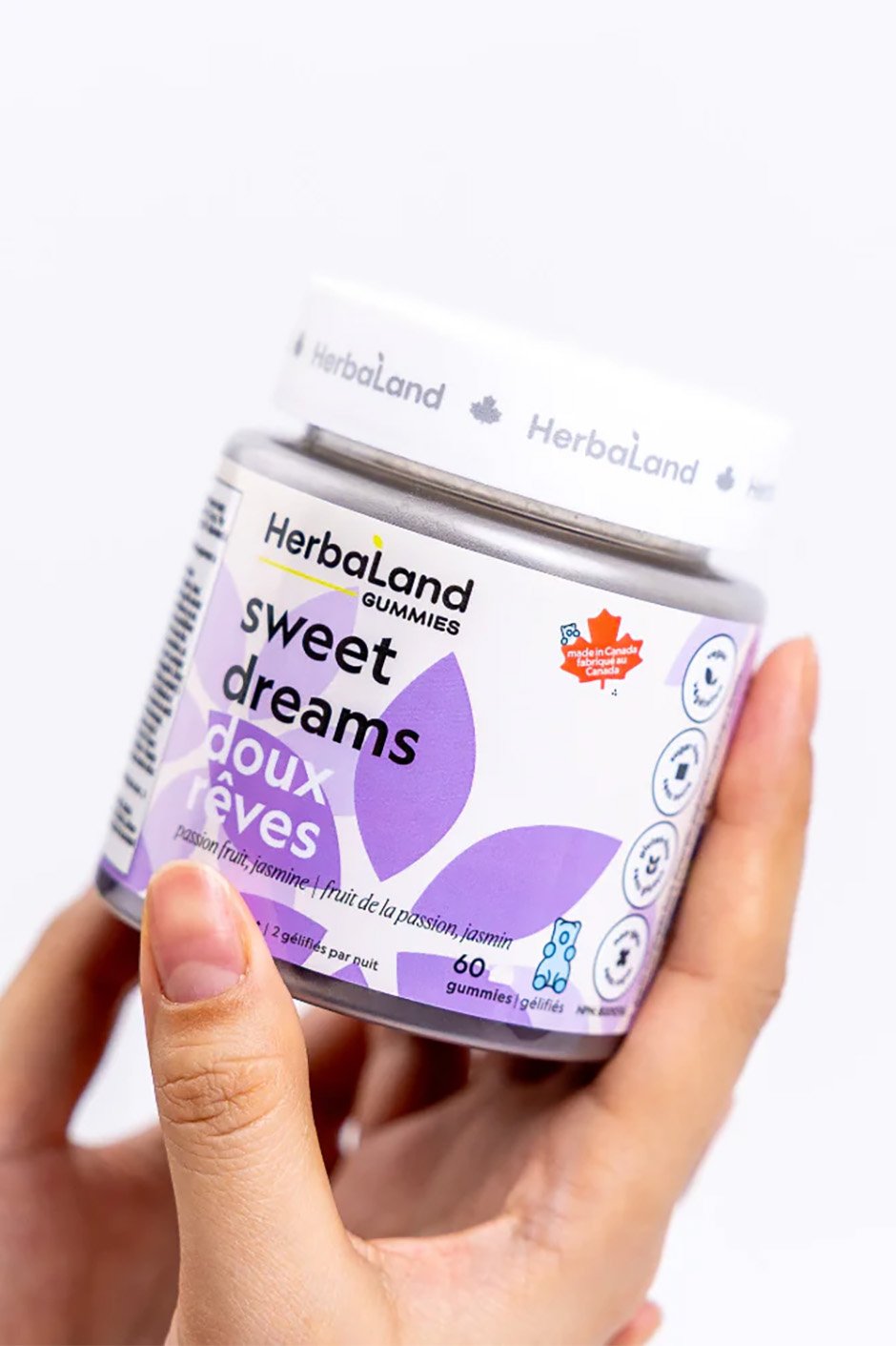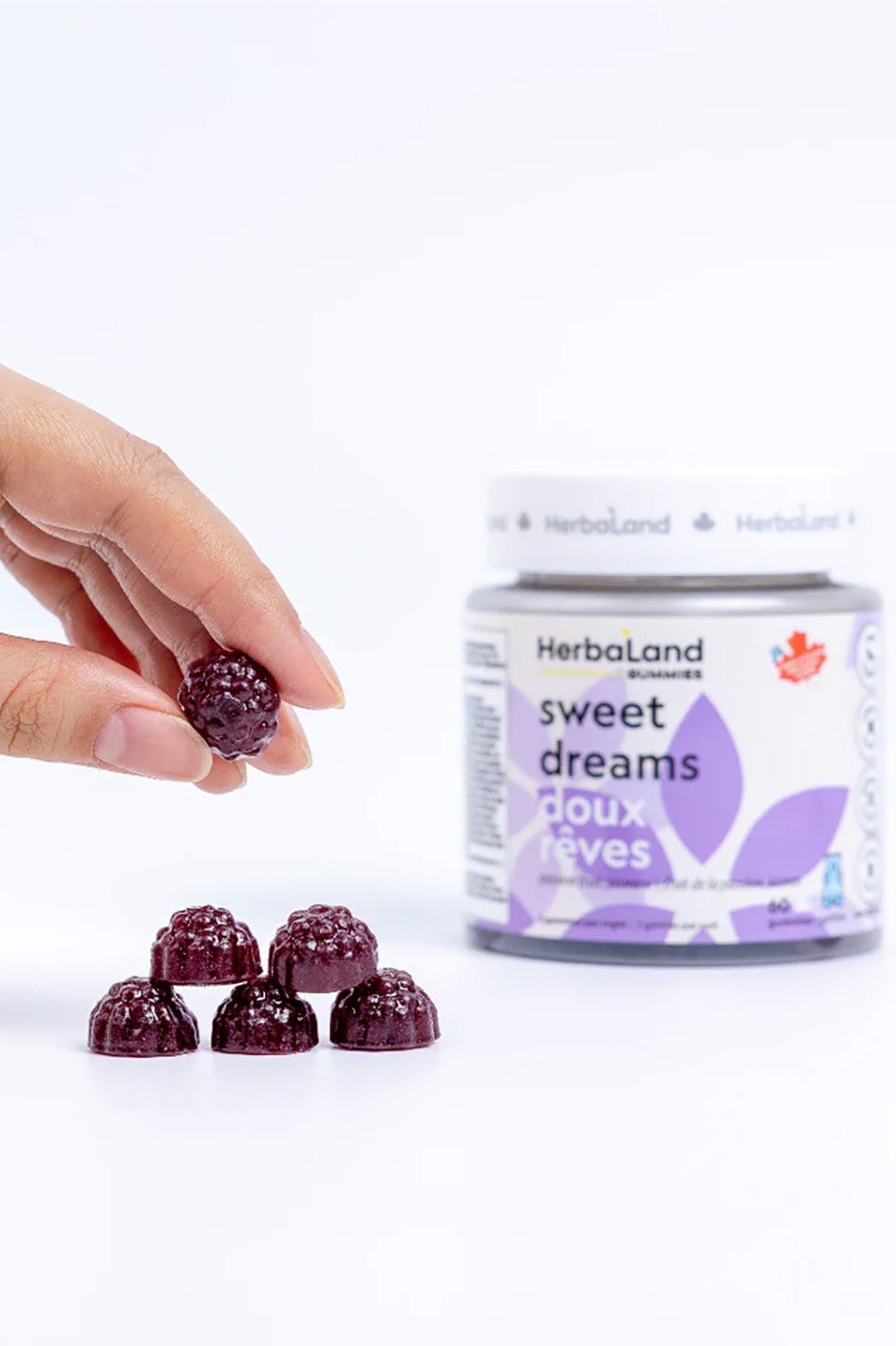 Drift off to dreamland with Herbaland Sweet Dreams gummies, your go-to vegan sleep aid. Made with melatonin, L-theanine, lemon balm, and vitamin B6, these sugar-free sleep gummies help you fall asleep faster, improve sleep quality, and reset your natural sleep-wake cycle.