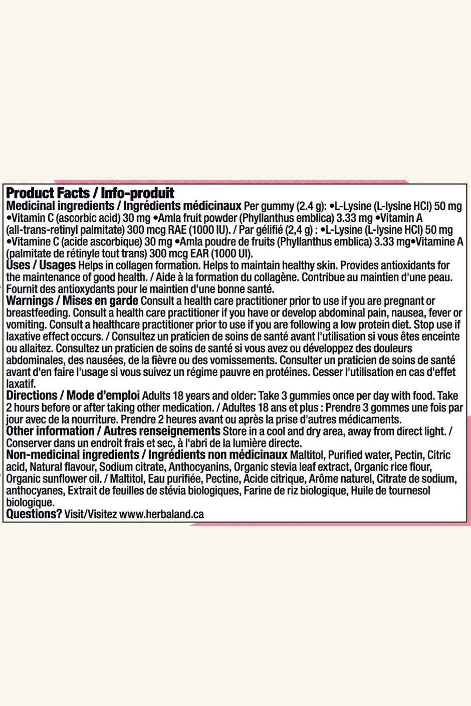 • L-Lysine (L-lysine HCI) 50 mg