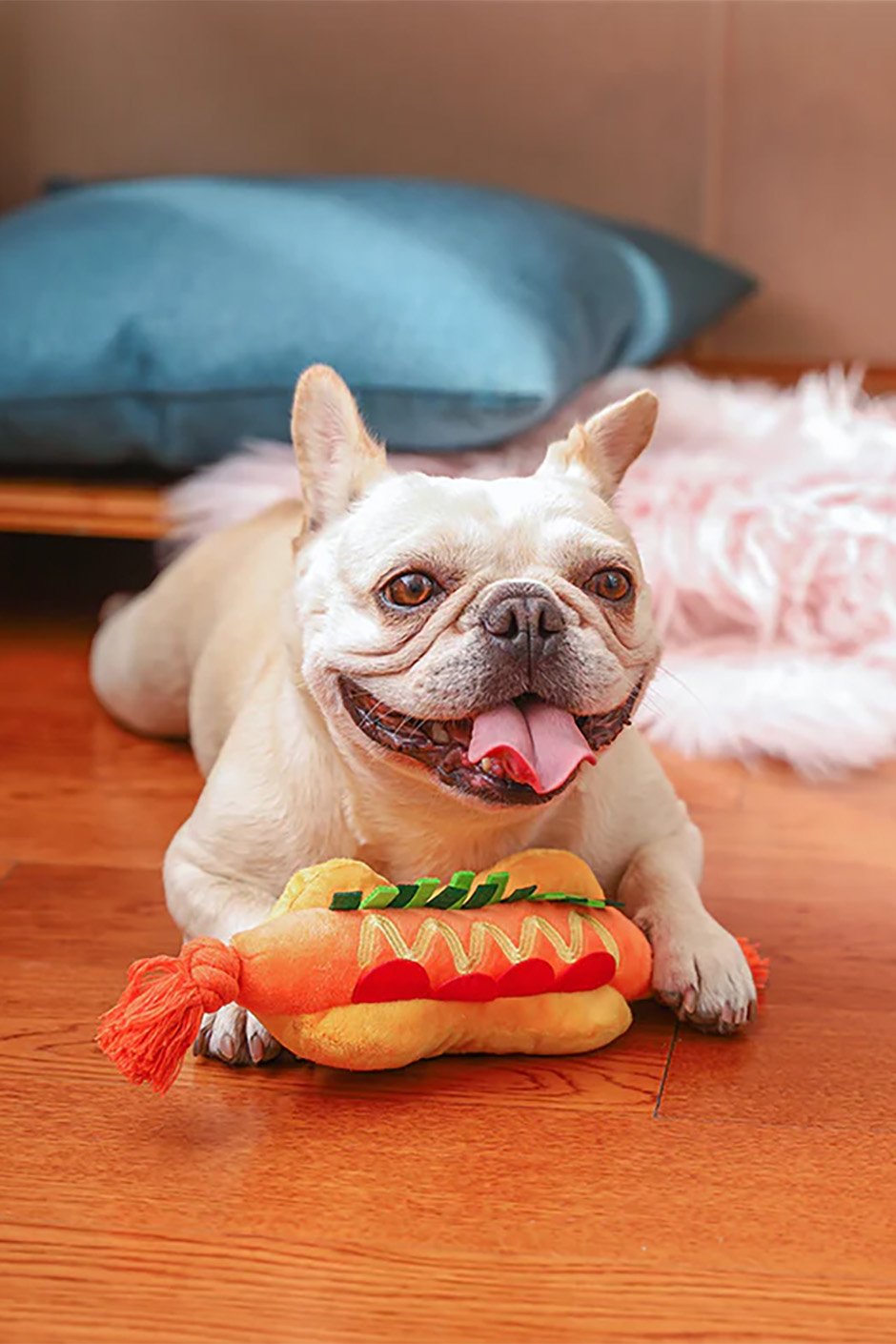 Everyone loves a good cookout, and now your pup can join the fun! This adorable toy has rope knots on each end and a hidden squeaker that brings the party to life. From tug-of-war to snuggle time, it’s always ready for play.