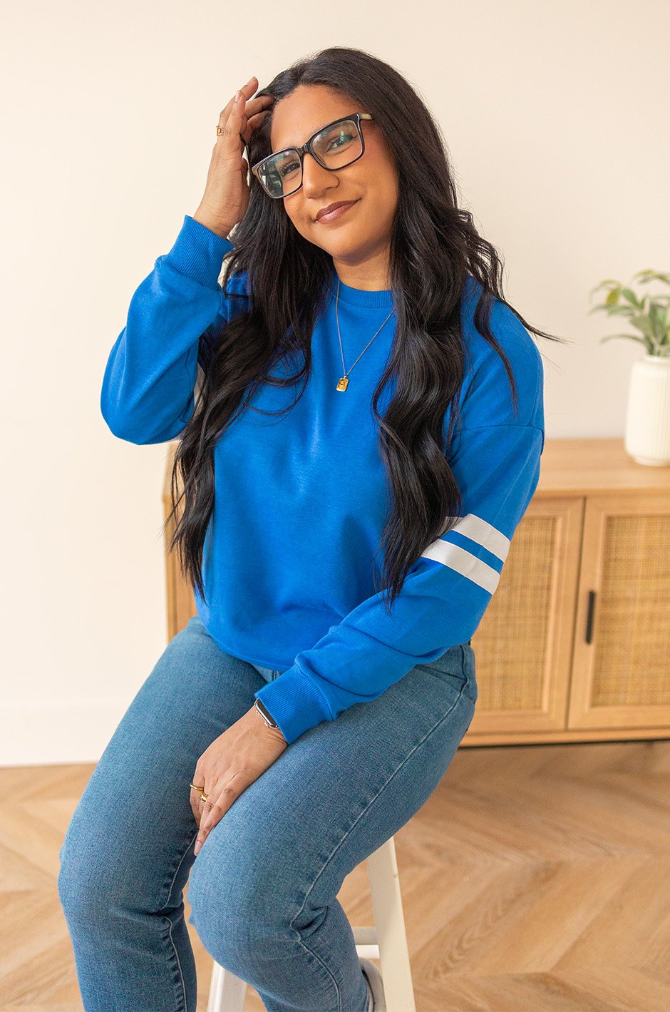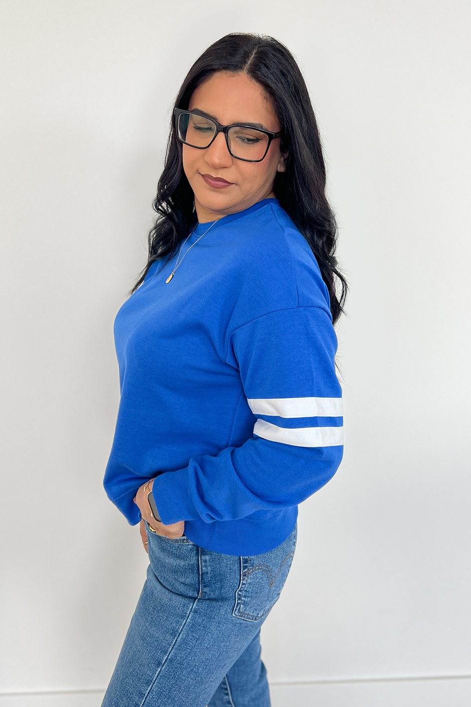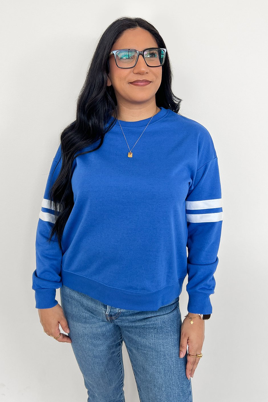 This sleek, sporty sweatshirt from our very own Salti Road is such a good one!! We all loved the red, but these new shades are seriously pretty, especially if you’re into jewel tones like me. I tried the Small and while it worked, it felt a bit snug and slightly short. For the intended fit, I’d go with my usual Medium. But knowing me and my love for oversized sweatshirts, I’d probably grab an XL for that extra roomy feel. It’s super versatile and easy to style with jeans, leggings, or joggers, and would be so cute for game days too when you want something comfy but still sporty.