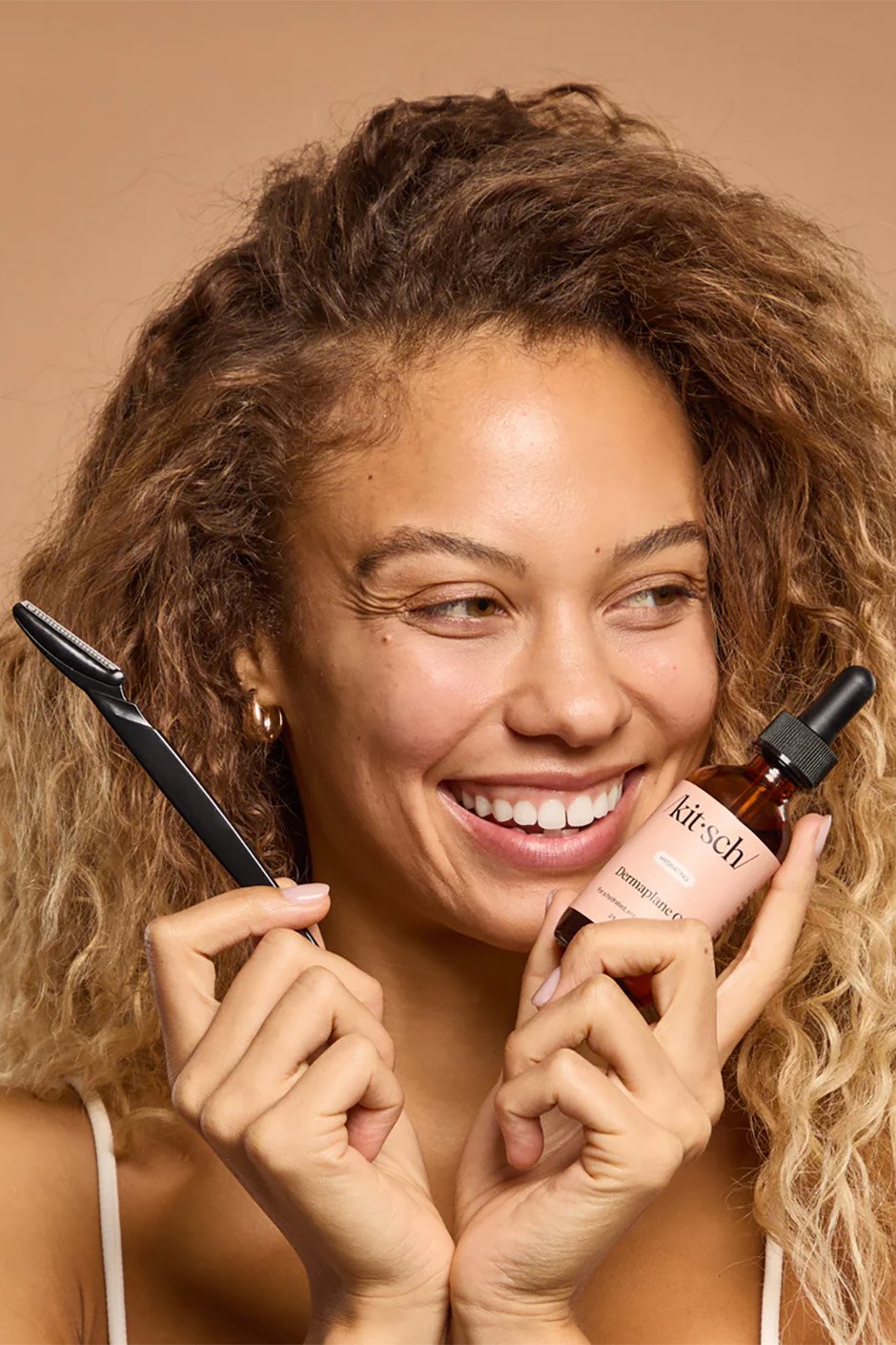 2. For dermaplaning, pull skin taut and glide the tool slowly in the direction of hair growth.