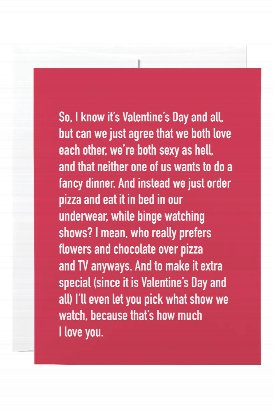 For the Valentine who doesn’t need anything fancy. A little ramble, a little humor, and a lot of heart; this card is all about enjoying the day your way. Made in Canada on acid-free recycled paper.