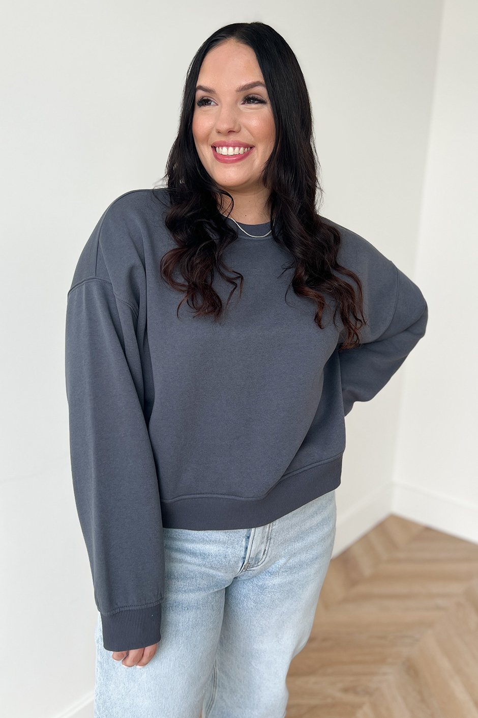 The Running Late Sweatshirt lives up to its name with soft fleece and a relaxed drop shoulder fit. Comfortable enough to wear all day, easy enough for rushed mornings.