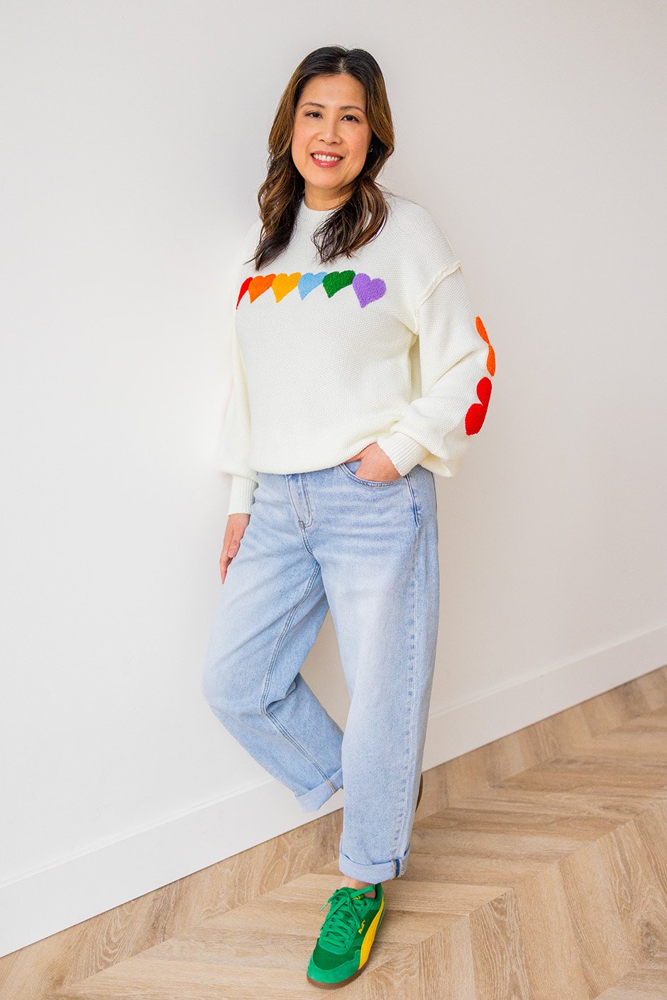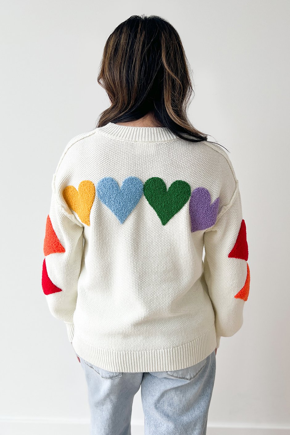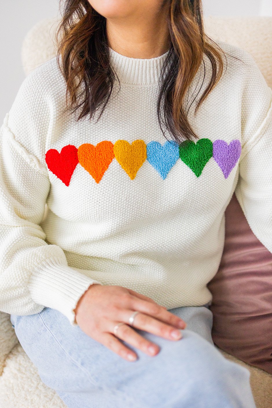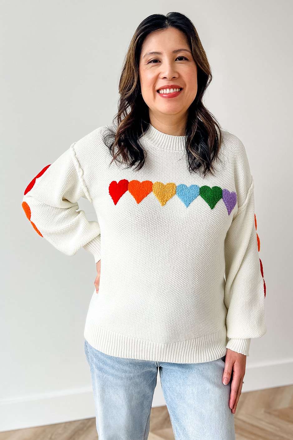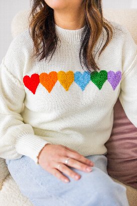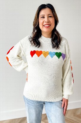 The Whole Lotta Heart Sweater from Salti Road has a waffle-like knit texture with beautiful chenille hearts. Cozy, festive, and easy to wear year-round! Because hearts aren’t just for one season, and this one styles effortlessly with everything.
