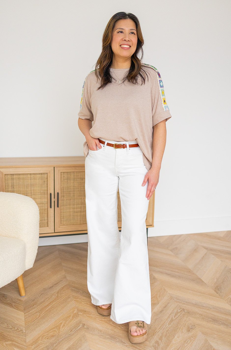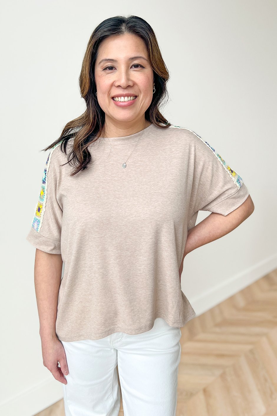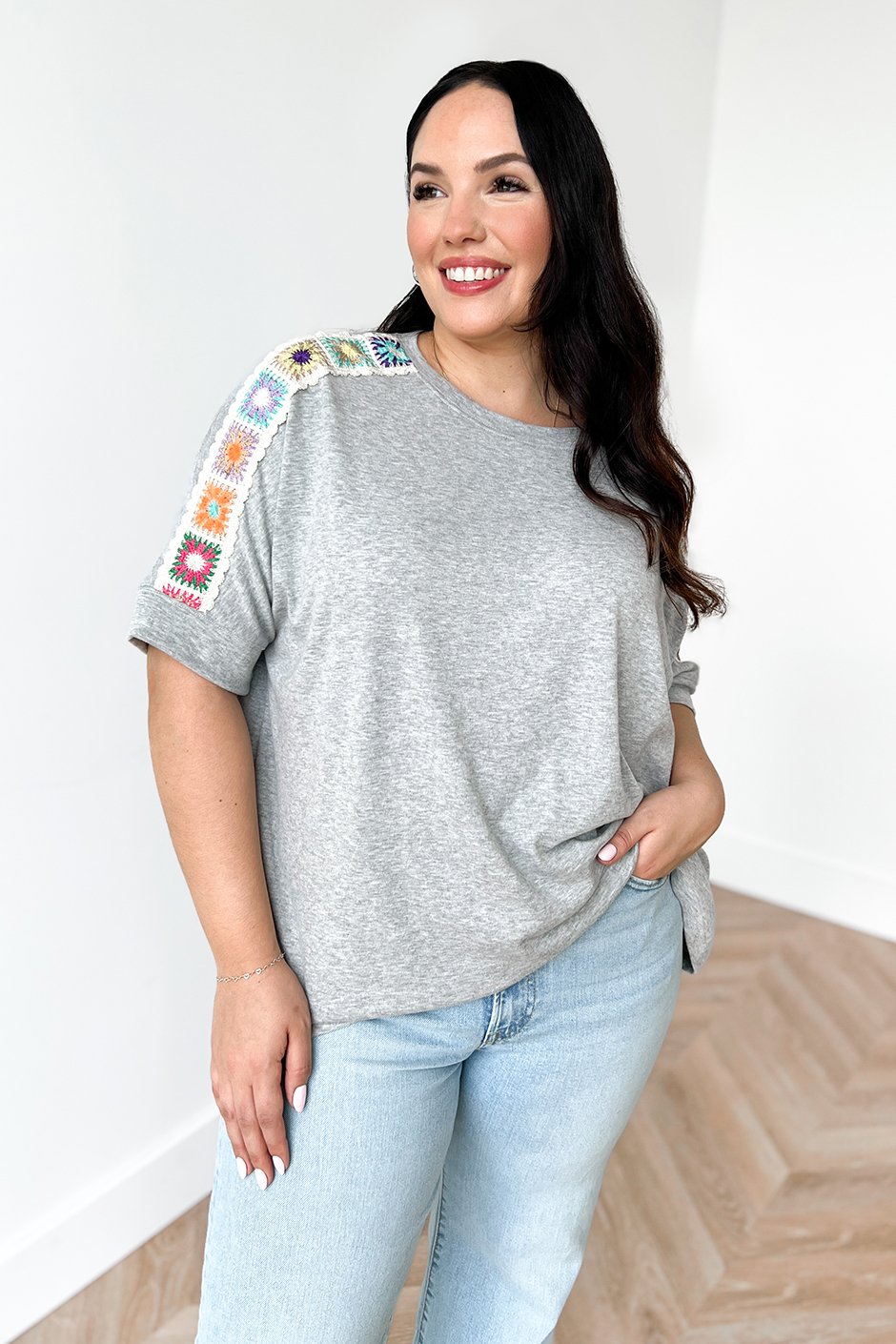 The Road Trip Crochet Top brings boho-chic vibes with beautiful crochet details along the shoulders. Soft, stretchy knit that's lightweight and perfect for transitioning into spring.