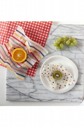 Danica's Beeswax Wrap Set ‘freshen up’ food storage, in the fridge or on the go. In sets of 3, these vibrant and colorful wraps are washable, durable and reusable. Completely safe and nontoxic, beeswax wraps can be used with a variety of foods.