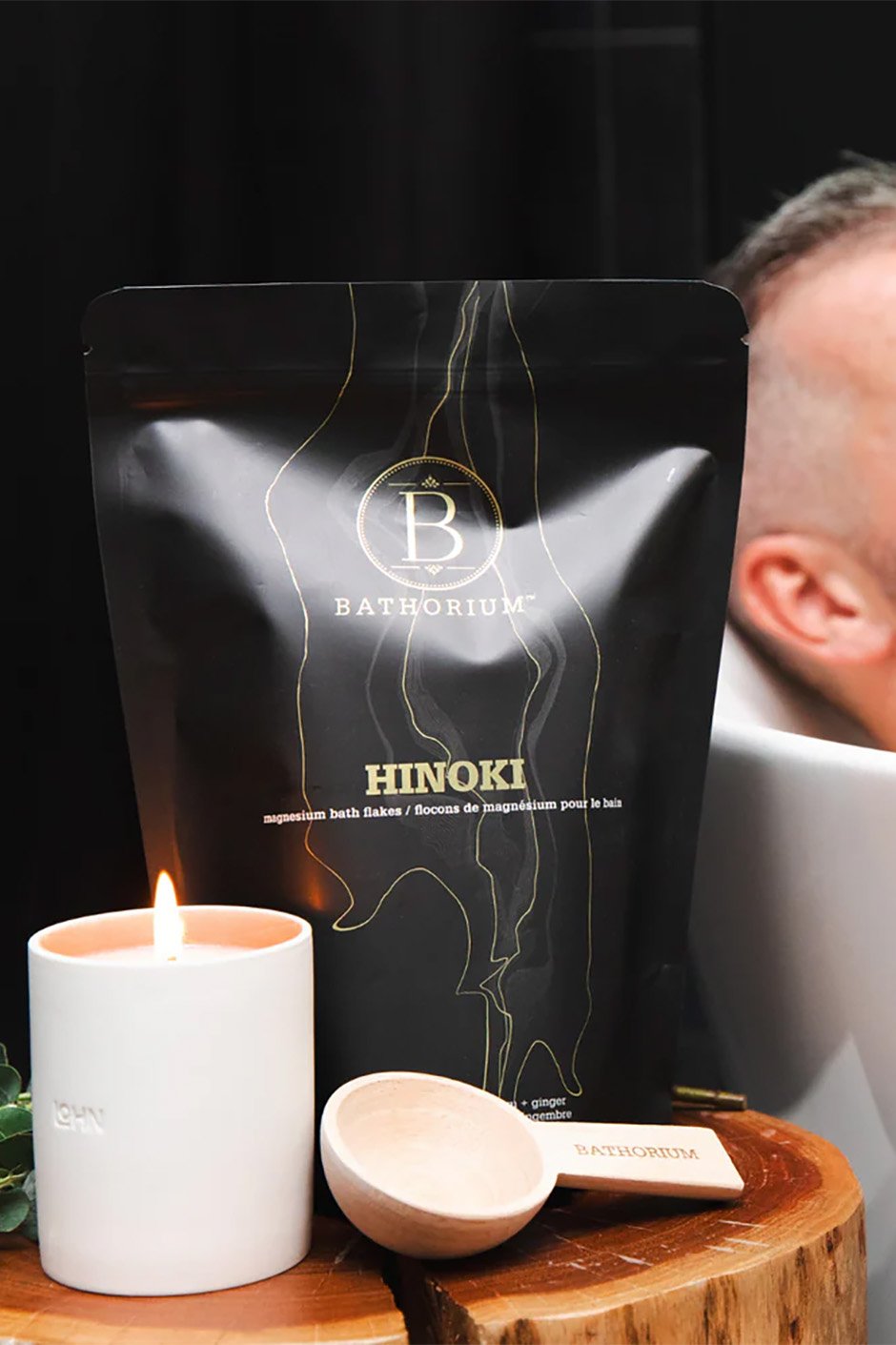 Find serenity in simplicity with Hinoki Magnesium Bath Flakes, inspired by Japanese onsen bathing rituals. As the flakes dissolve, they transform into a magnesium-rich oil that eases muscle tension and supports recovery. Use on its own or add to other Bathorium products to increase magnesium benefits.