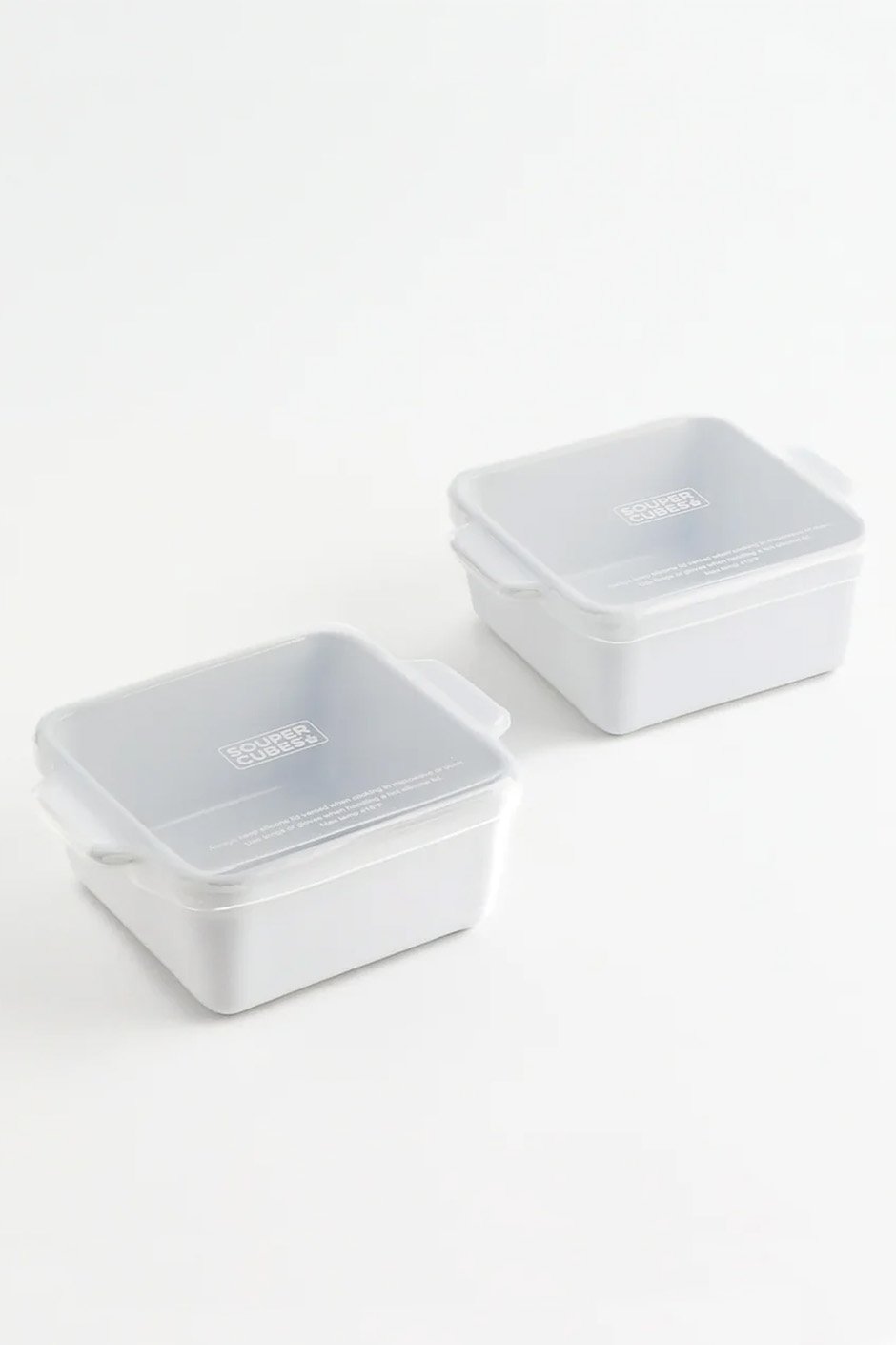 The Souper Cubes® 5" ceramic square baking dishes with silicone covers are perfect for baking or serving food in individual portions.