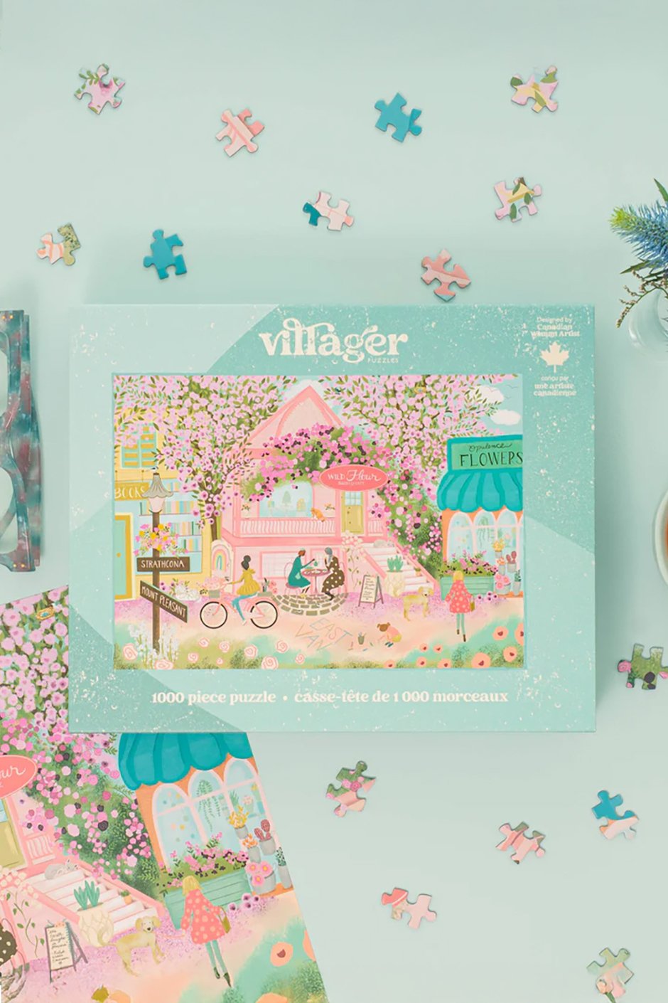 A whimsical love letter to springtime in Vancouver, this artwork imagines an aspirational slow life filled with pink bikes, blooming streets, and cozy local cafés. Dreamed up in BC artist Ginger Deverell's light-filled attic studio and inspired by neighbourhood wanderings, it celebrates simple pleasures, community, and everyday moments in bloom.