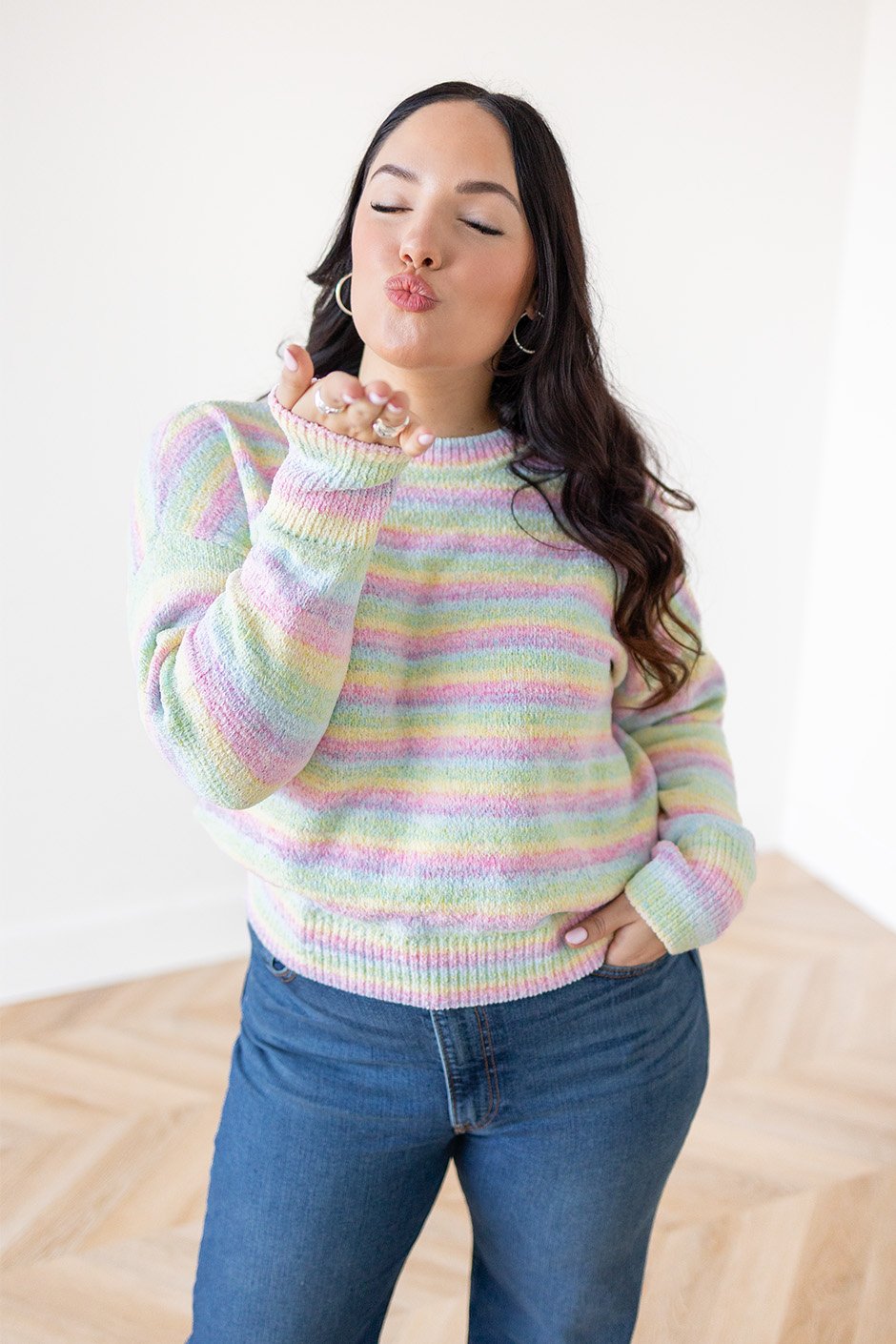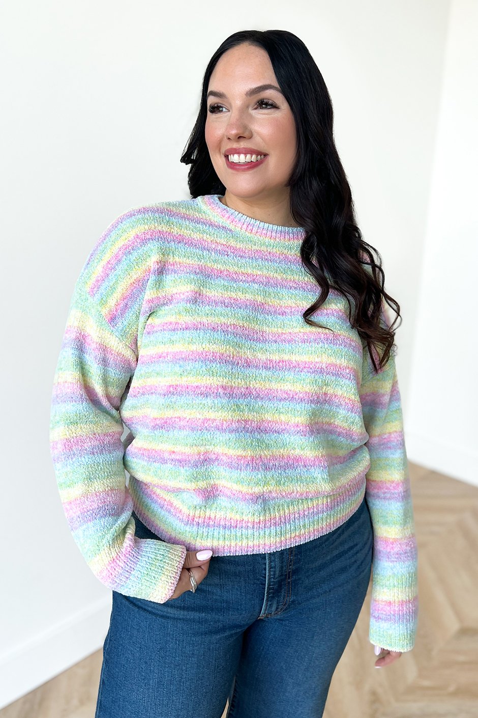 This Cloud Chaser stripe sweater brings that easy, throw-on-and-go energy with a relaxed crew neckline and an ultra-comfy feel you’ll want to live in.