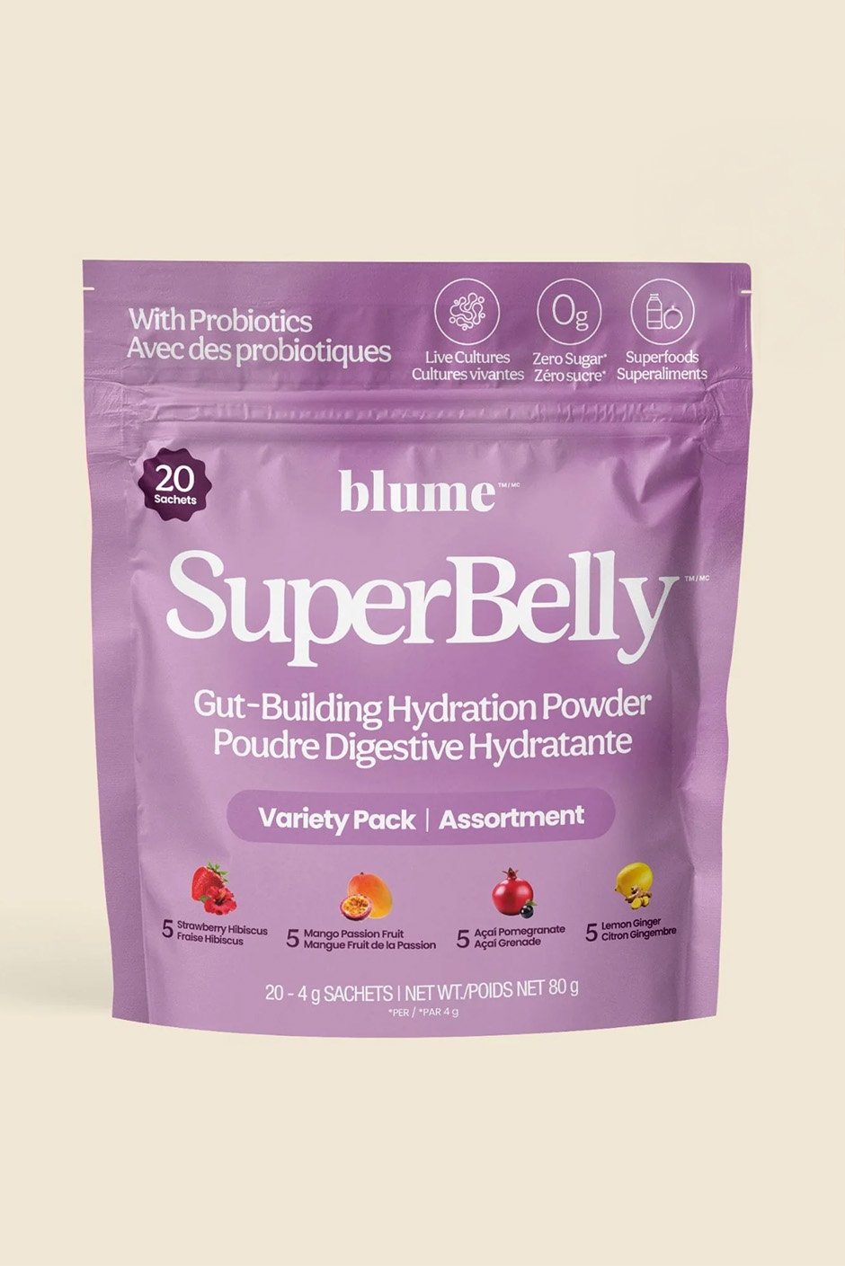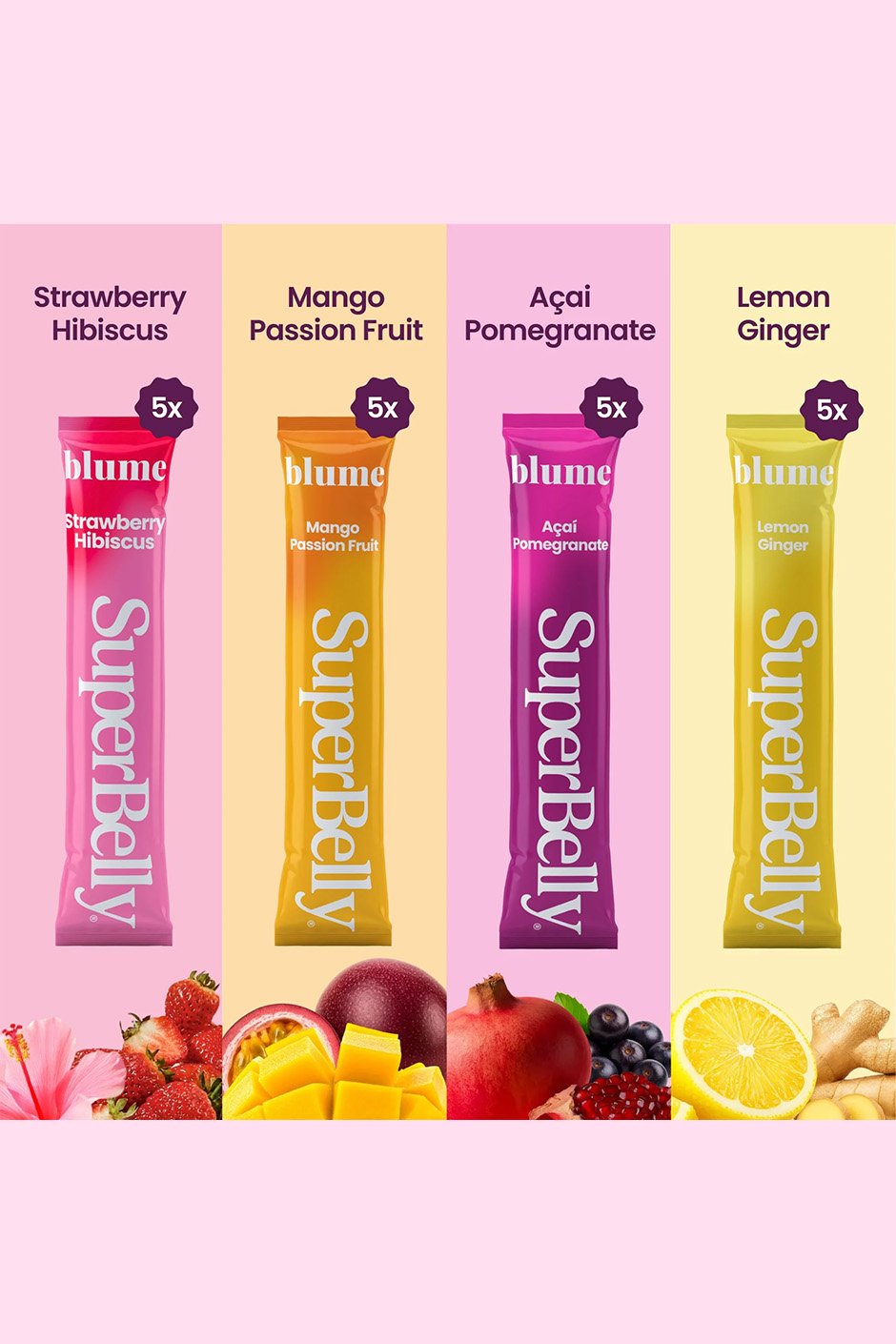 Sign In Here• 20 travel friendly packets - includes five servings of each juicy flavour: Strawberry Hibiscus, Mango Passion Fruit, Açai Pomegranate, and Lemon Ginger