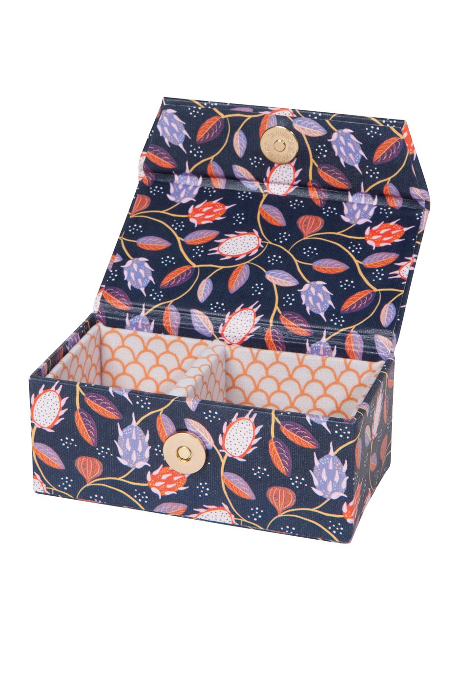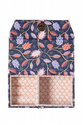 A sleek travel companion in an elegant dark palette, adorned with intricate vines. Strands, rings, and other tiny treasures are safe and sound when you’re on the go.
