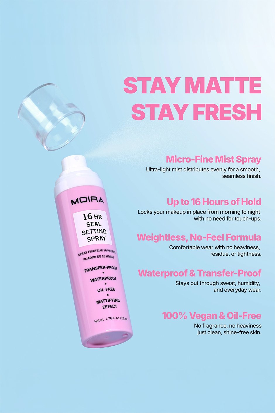 • Ultra-light mist distributes evenly for a smooth, seamless finish