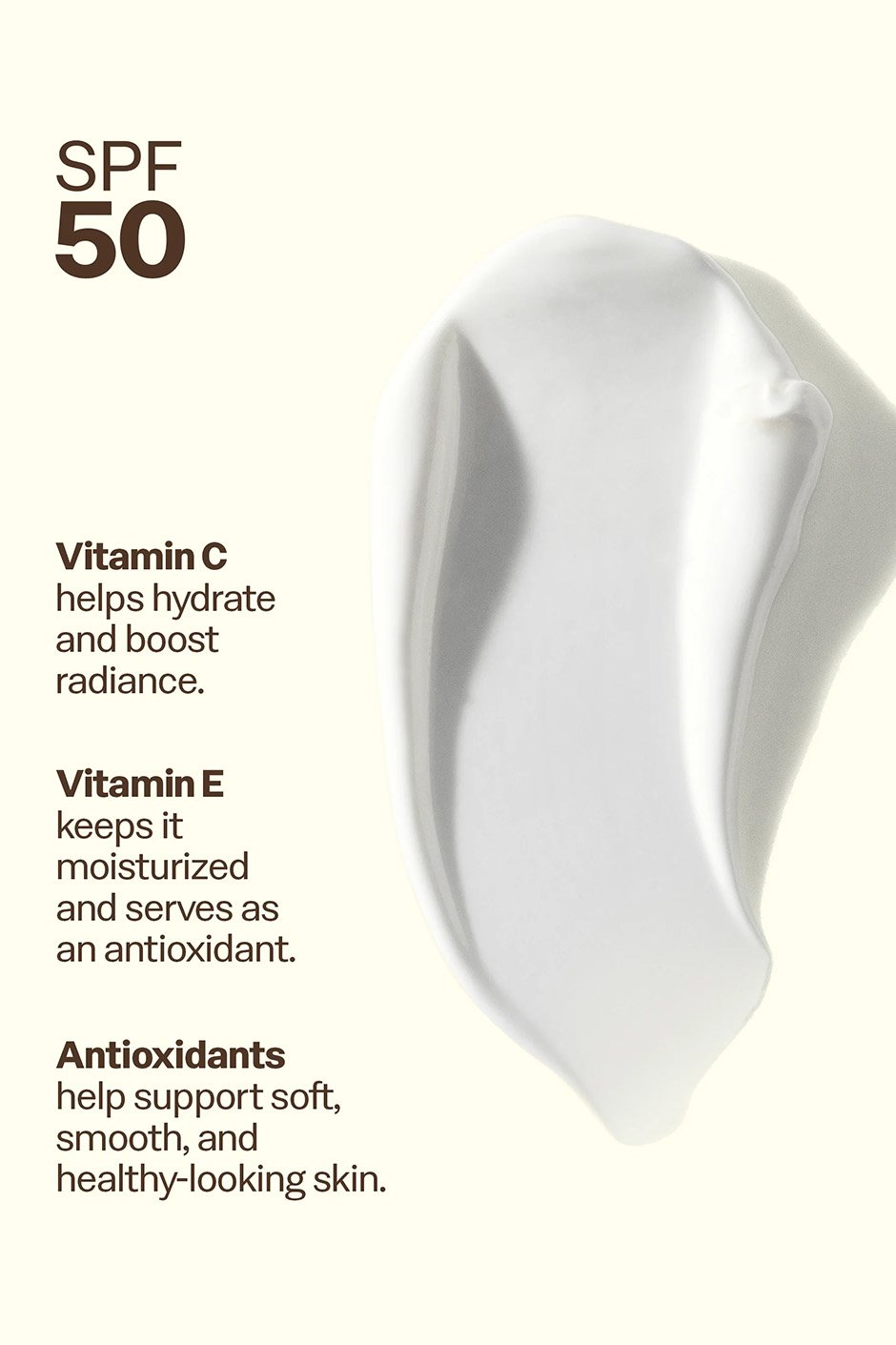 Think of your favorite body lotion, but with SPF benefits. Enriched with Vitamin E and Antioxidants, our Daily SPF 50 Body Lotion feels lightweight, provides 24-hour moisture, and protects against UVA/UVB rays. Plus, it kinda makes us wanna wear it on the daily.