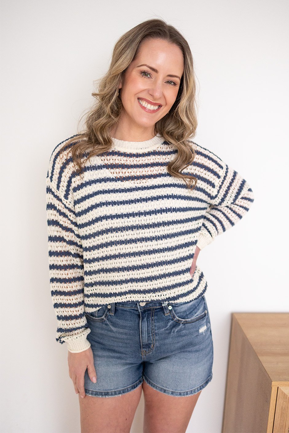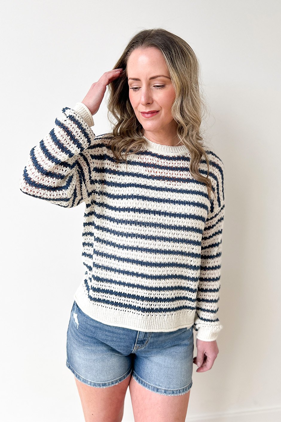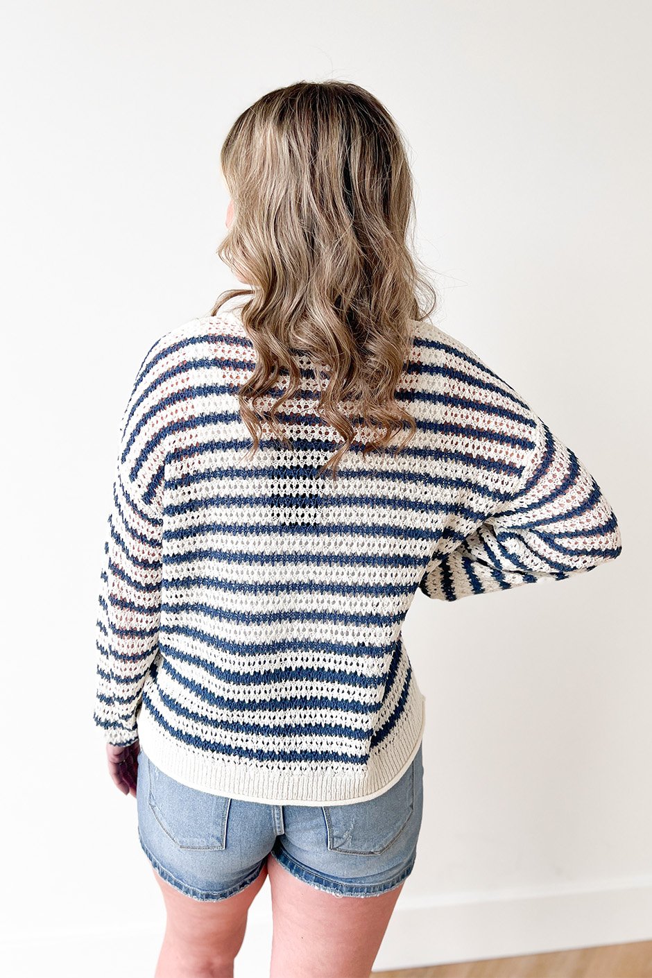 The Perfect Idea Sweater is one of those pieces you’ll reach for again and again. It features a soft, airy knit that feels lightweight but still cozy, making it perfect for layering or wearing on its own. The relaxed fit keeps it easy and comfortable for everyday wear, and it pairs effortlessly with jeans or shorts. I’m wearing a size Small and it fits true to size.