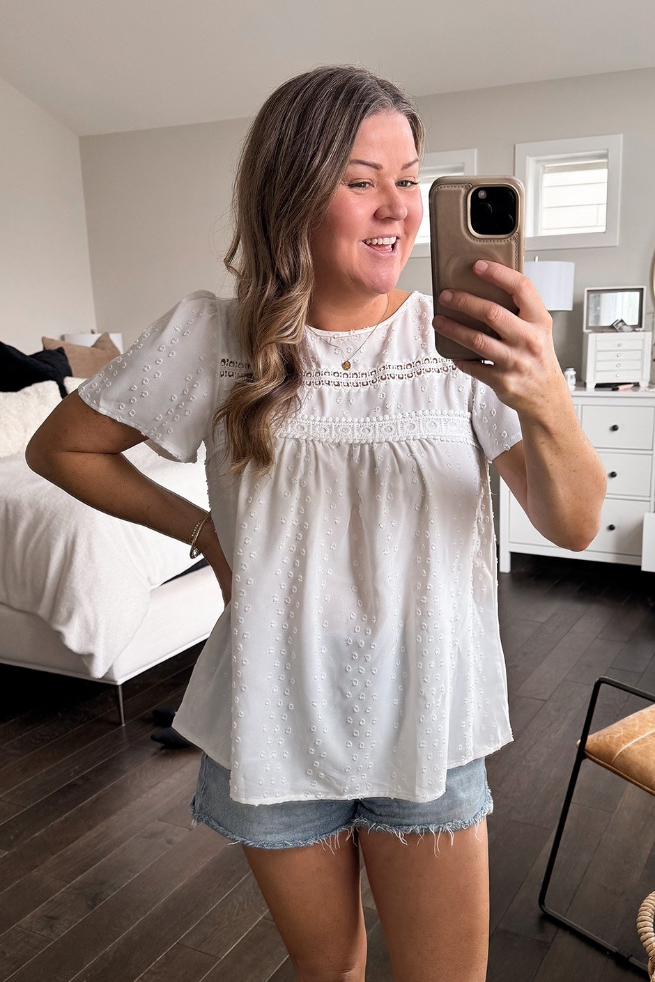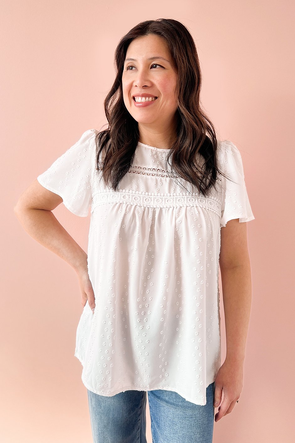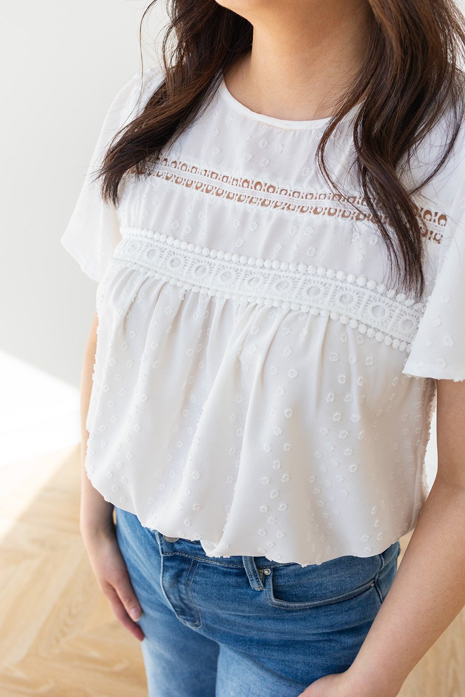 Easy, breezy, and beautifully feminine. This lightweight blouse with lace trim details brings a soft, romantic feel with a hint of wanderlust. Perfect for sunlit days, evening strolls, and everything in between.