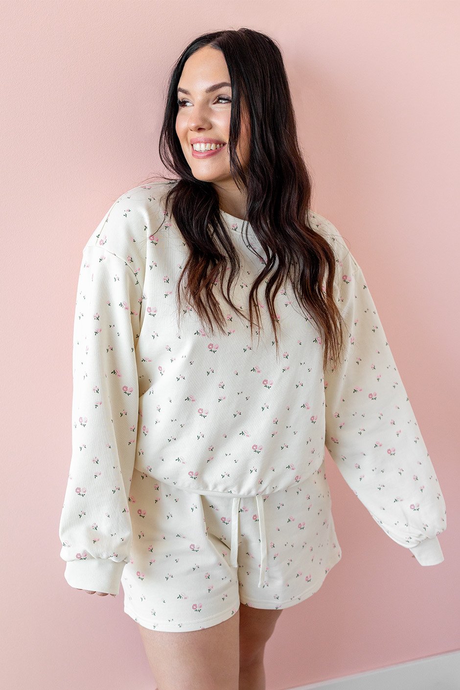 The matching Flower Girl Shorts complete the cutest cozy set. 🌸 Same amazing french terry fabric; soft, breathable, and really nice quality. They’ve got that comfy, relaxed fit with an easy waistband that makes them perfect for lounging or running around on a casual day. I typically wear size L and am wearing the XL/XXL here (since L/XL wasn’t available), and they still fit great, just a touch more relaxed. Pair them with the matching sweatshirt or mix and match with your basics…either way, you’ll be living in these! 💗