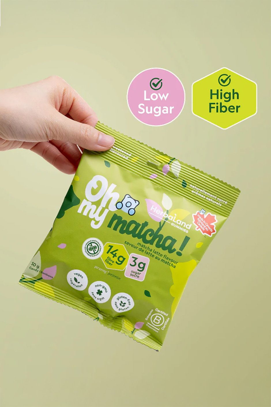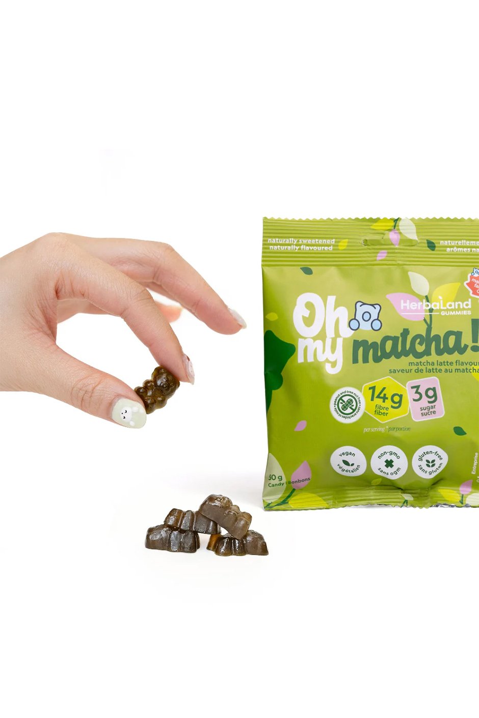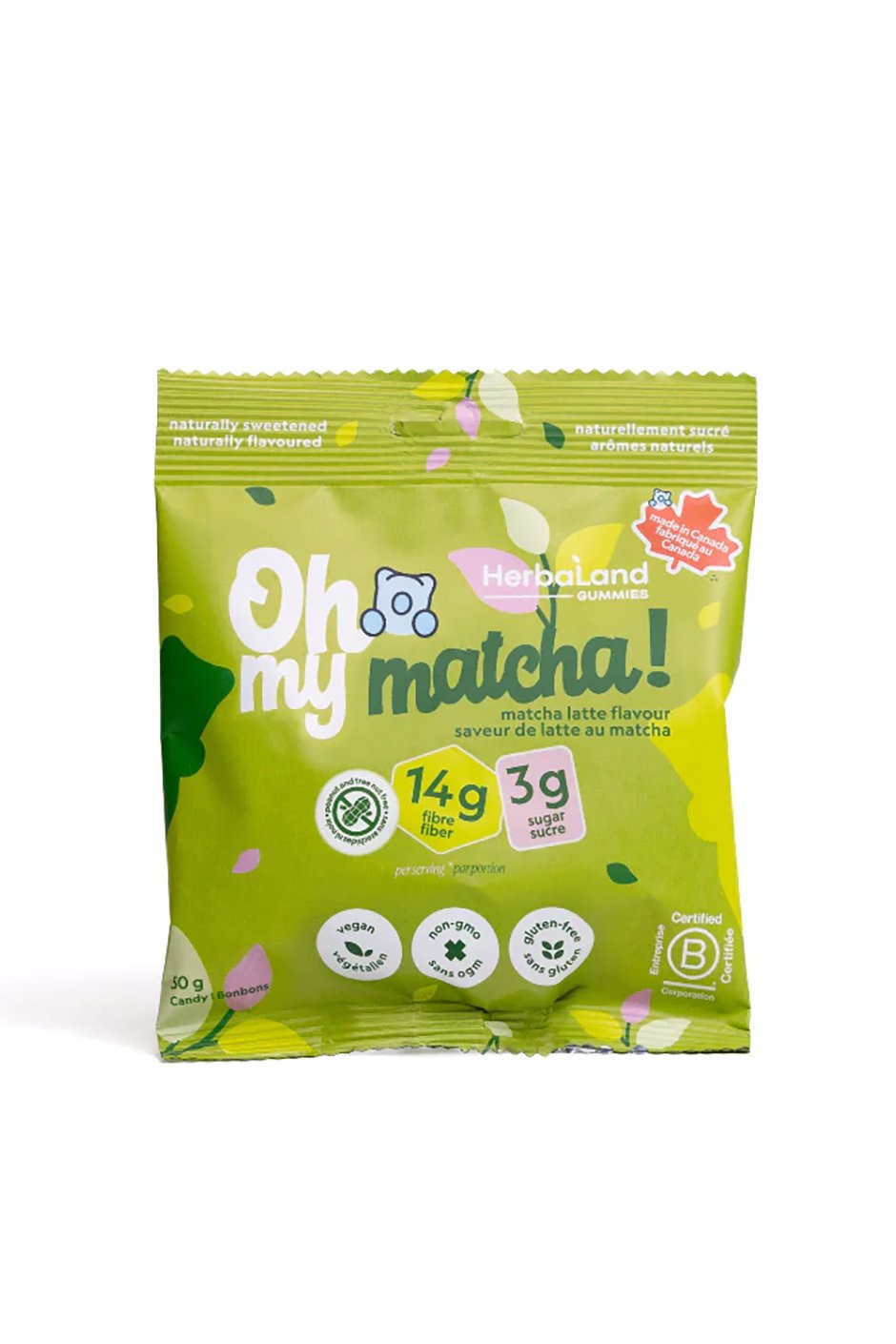 Oh My! Matcha is the newest addition to our Oh My! Gummies collection and Barista Bears lineup. Made for matcha lovers who crave that smooth, creamy taste. Made with real matcha from Japan, you can enjoy this café-inspired flavour anywhere, anytime in a delicious gummy form. Perfect for satisfying those afternoon or evening matcha cravings.
