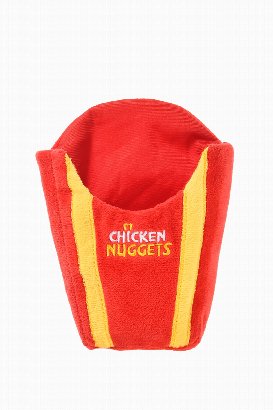 • Features three chicken nuggets inside a crinkle bag