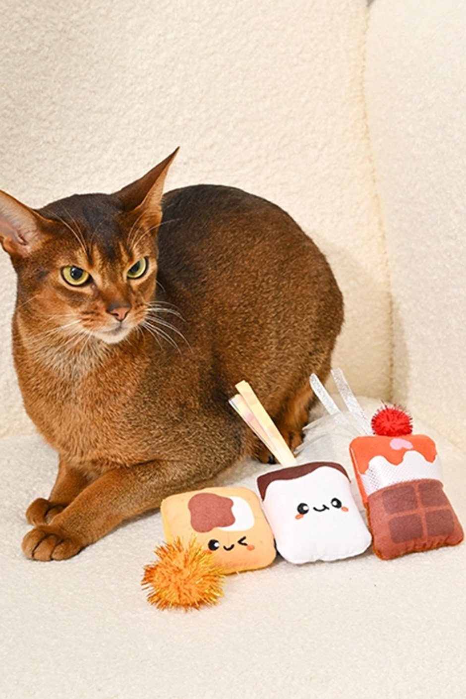 Sweeten up playtime! This s’mores-inspired set is packed with cozy campfire vibes your kitty will love. Each toy is filled with North American-grown catnip to keep them coming back for more, while soft textures and crinkly details add that extra layer of fun. Perfect for batting, chasing, and a little mischievous play, this set is a treat your cat won’t resist.