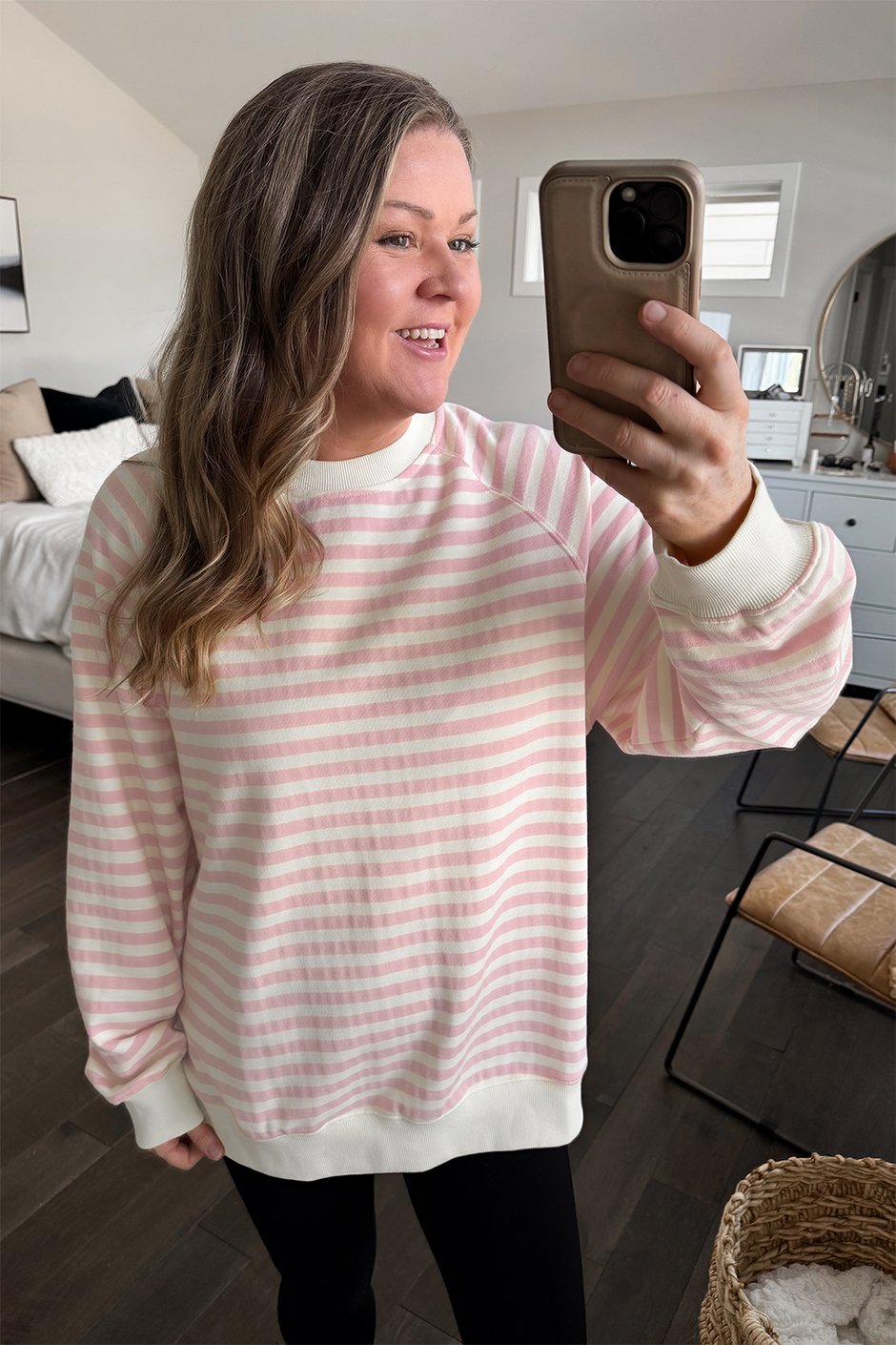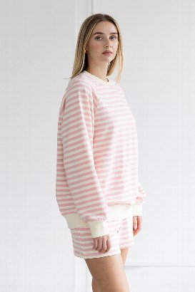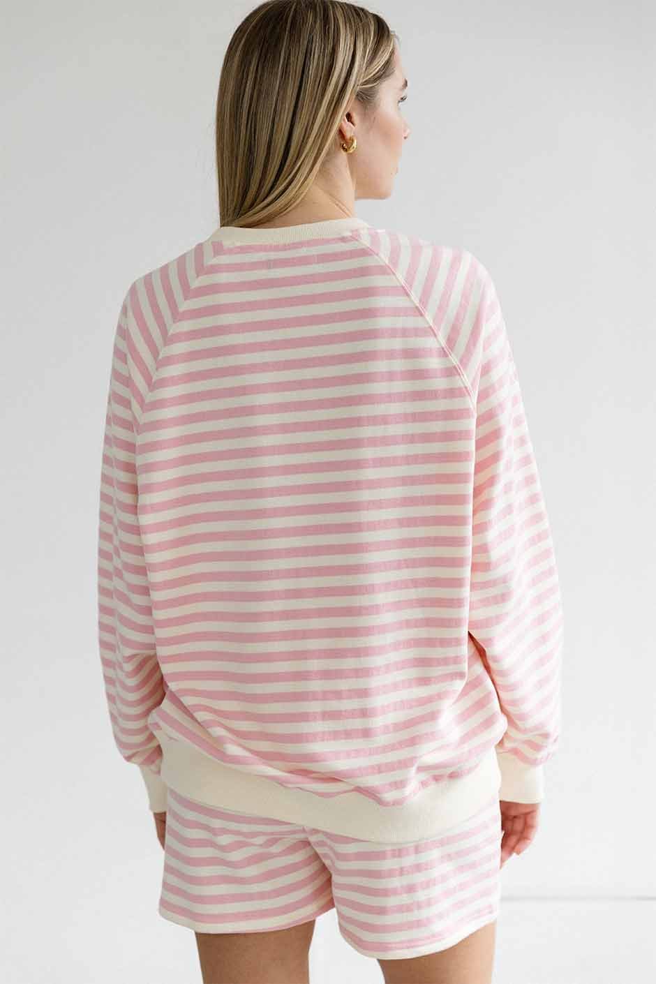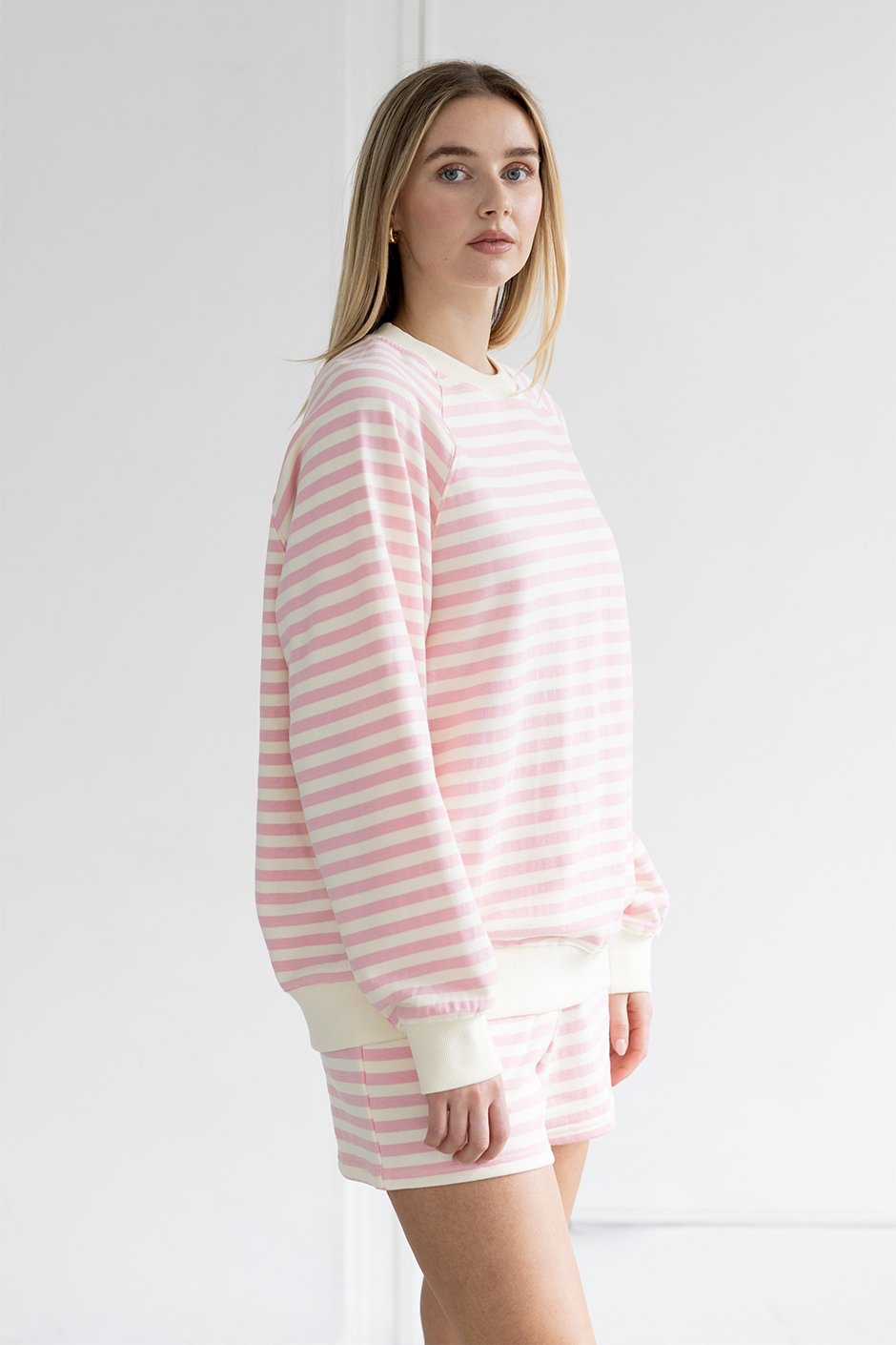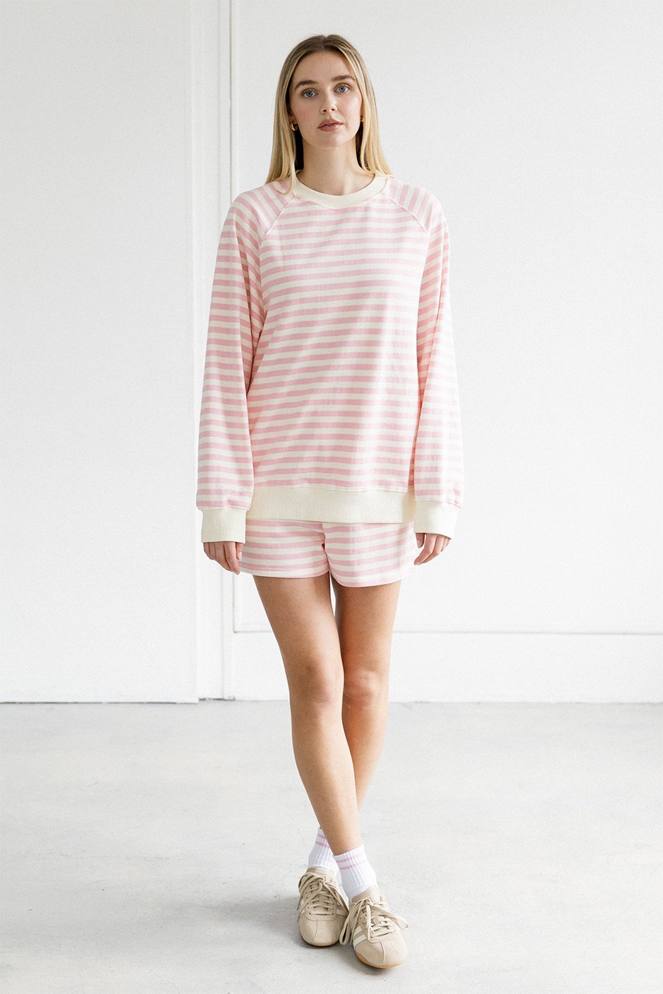 Say hello to easy weekends! The Sunday Stripe Sweatshirt is made from soft French terry with a laid-back fit and timeless stripes. Solid trim at the neck, cuffs, and hem adds just the right pop of contrast. Perfect for lounging or stepping out in effortless style.