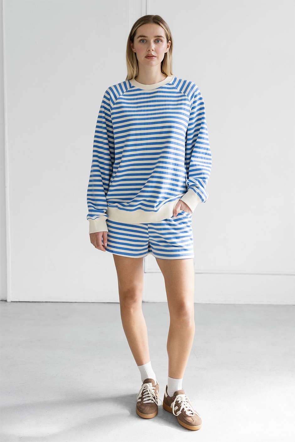 Easy, comfy, and made for relaxing! These Sunday Stripe Shorts are crafted from soft French terry with a lightweight feel and effortless fit. Perfect for slow mornings, cozy afternoons, or pairing with your matching sweatshirt for the cutest set vibe.