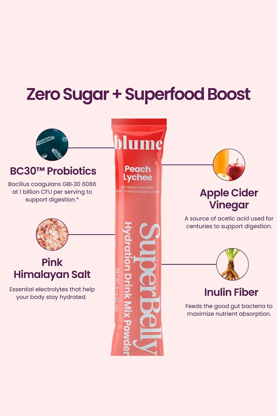 Sign In Here• SuperBelly combines a love for superfoods with prebiotics (from inulin), fermented apple cider vinegar, and probiotics that can contribute to a healthy gut.